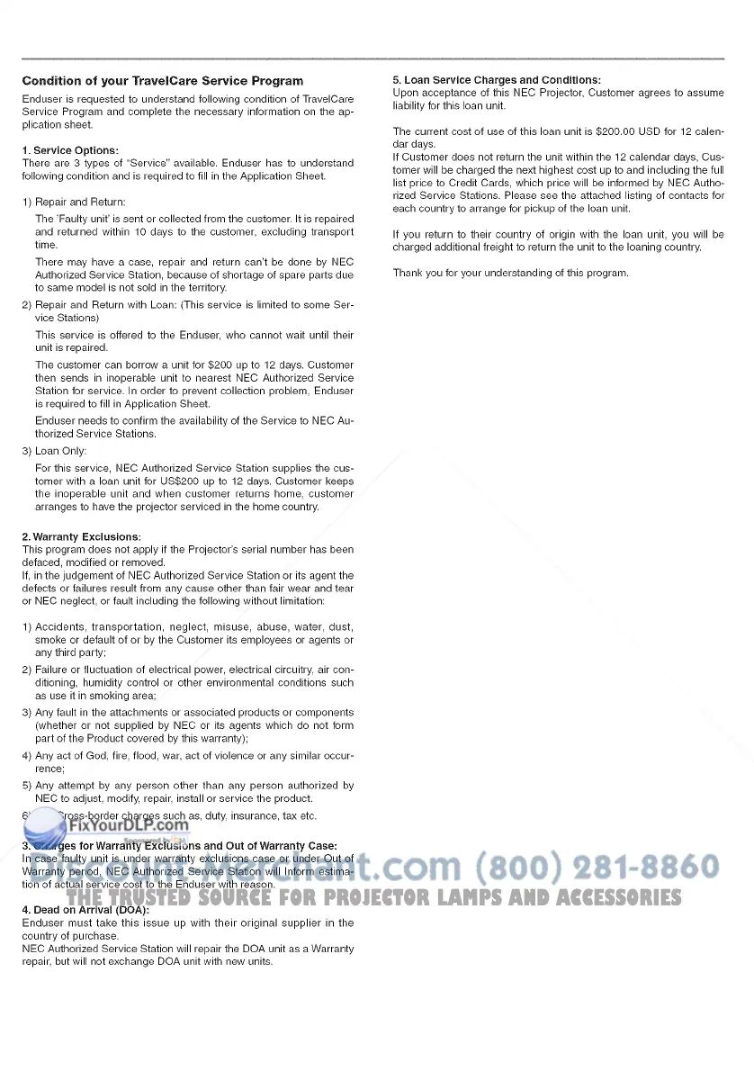 For this service, NEC Authorized Service Station supplies the cus-