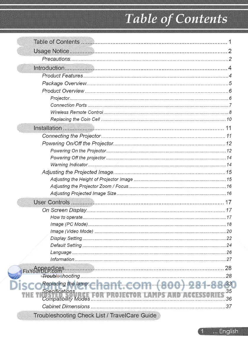 Adjusting the Projector Zoom / Focus .......................................................................... 16