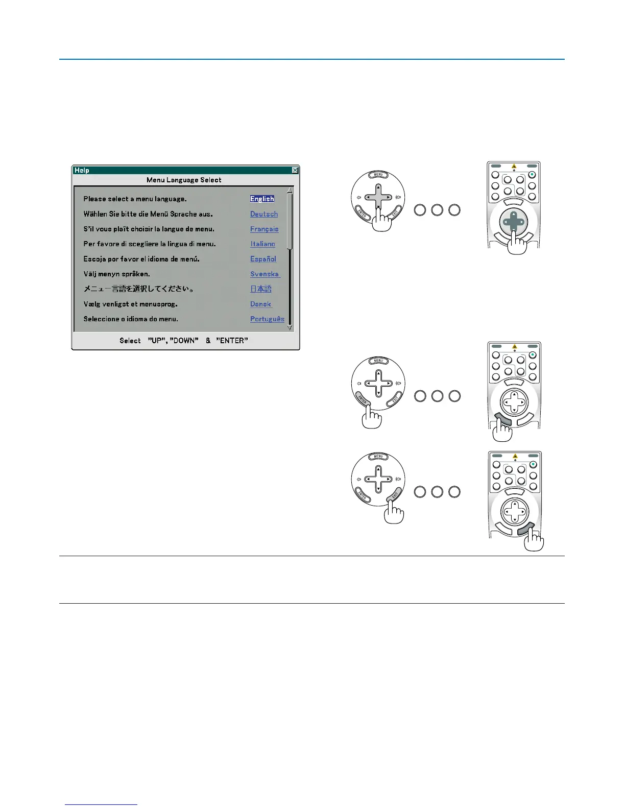 NEC NP2000 - 开机画面之说明 ( 菜单语言选择画面 )