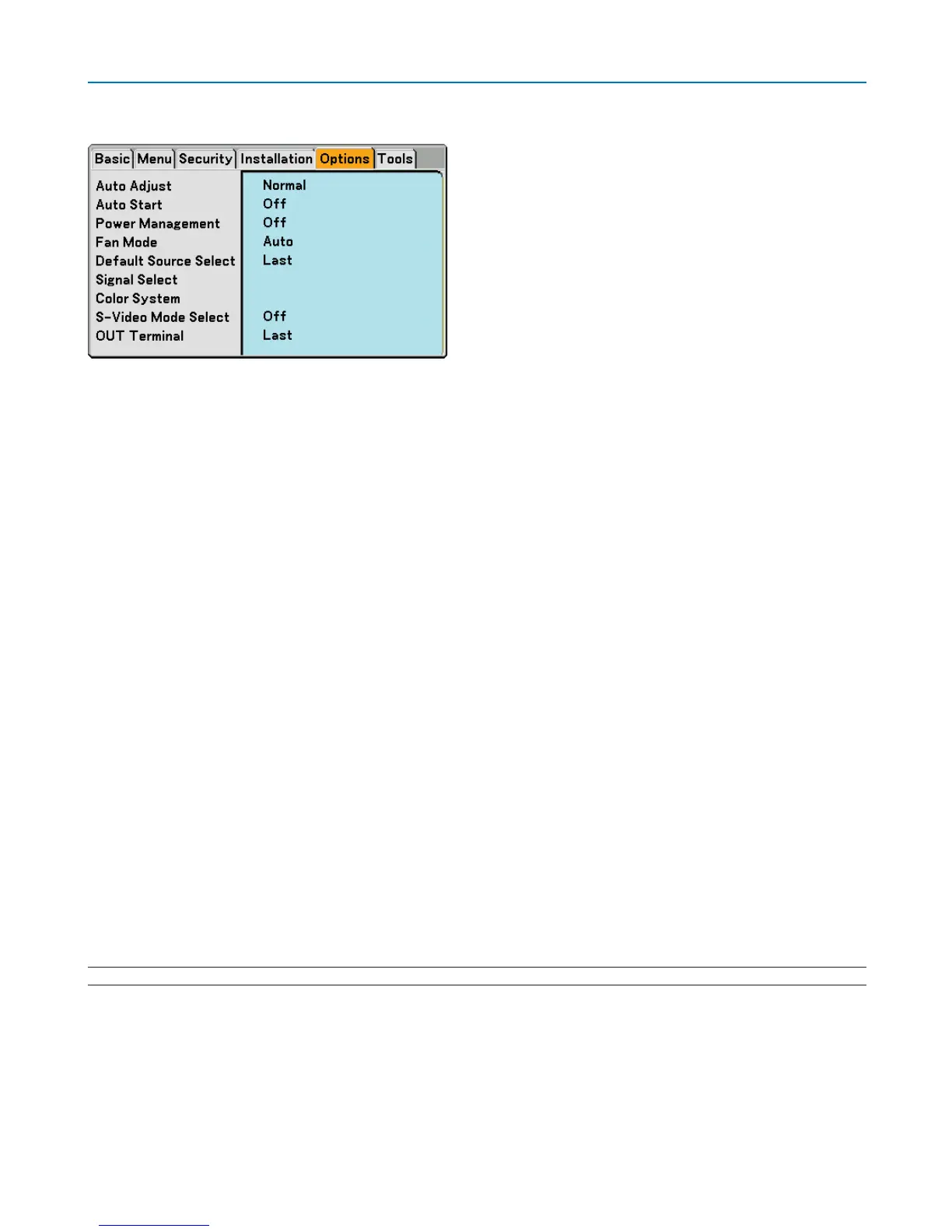 Last ....................... Sets the projector to default to the previous or last active input each time the projector is turned on.