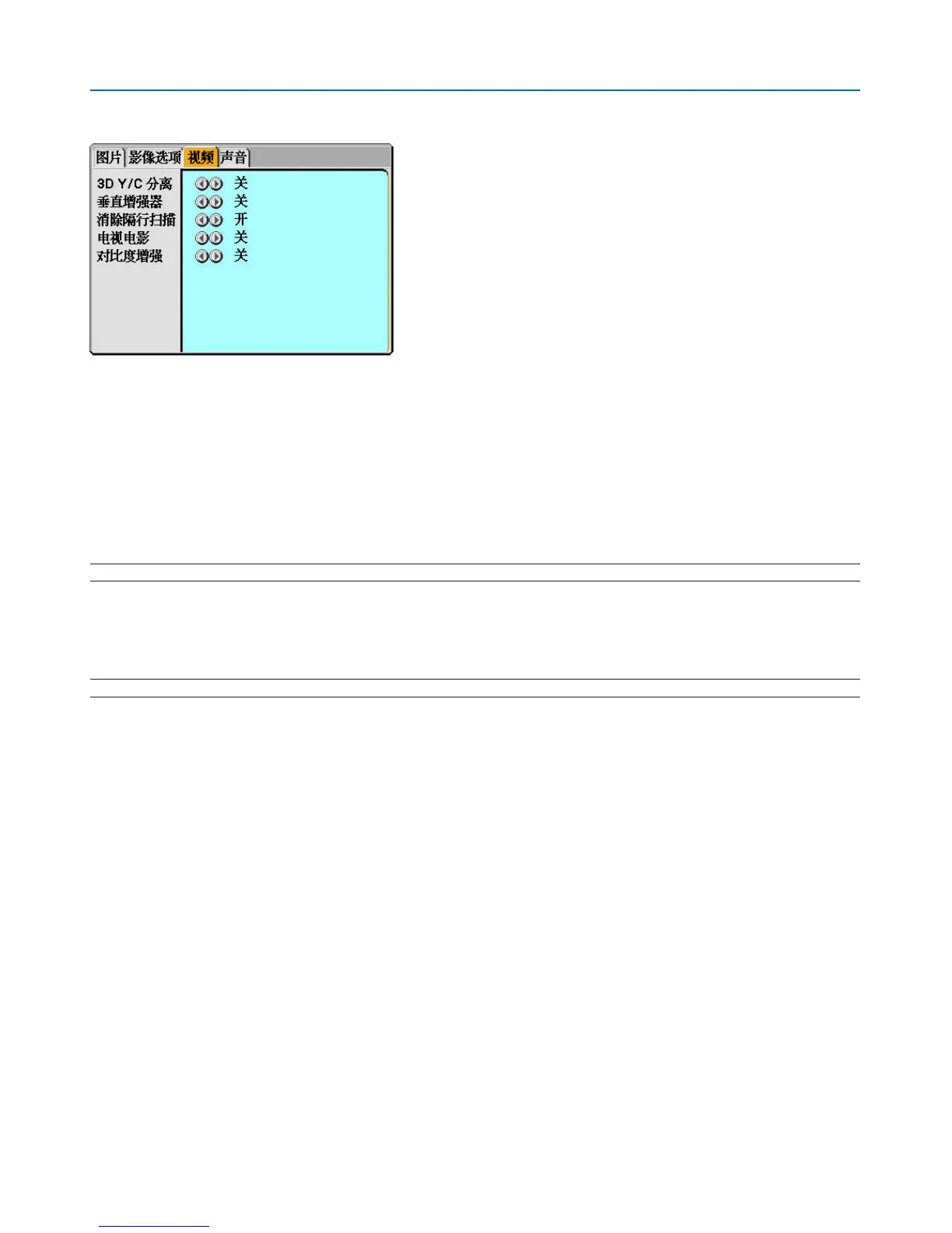 电影 .................. 显示移动影像时选择该项它可以消除移动影像的抖动和异常显示该项只能用于