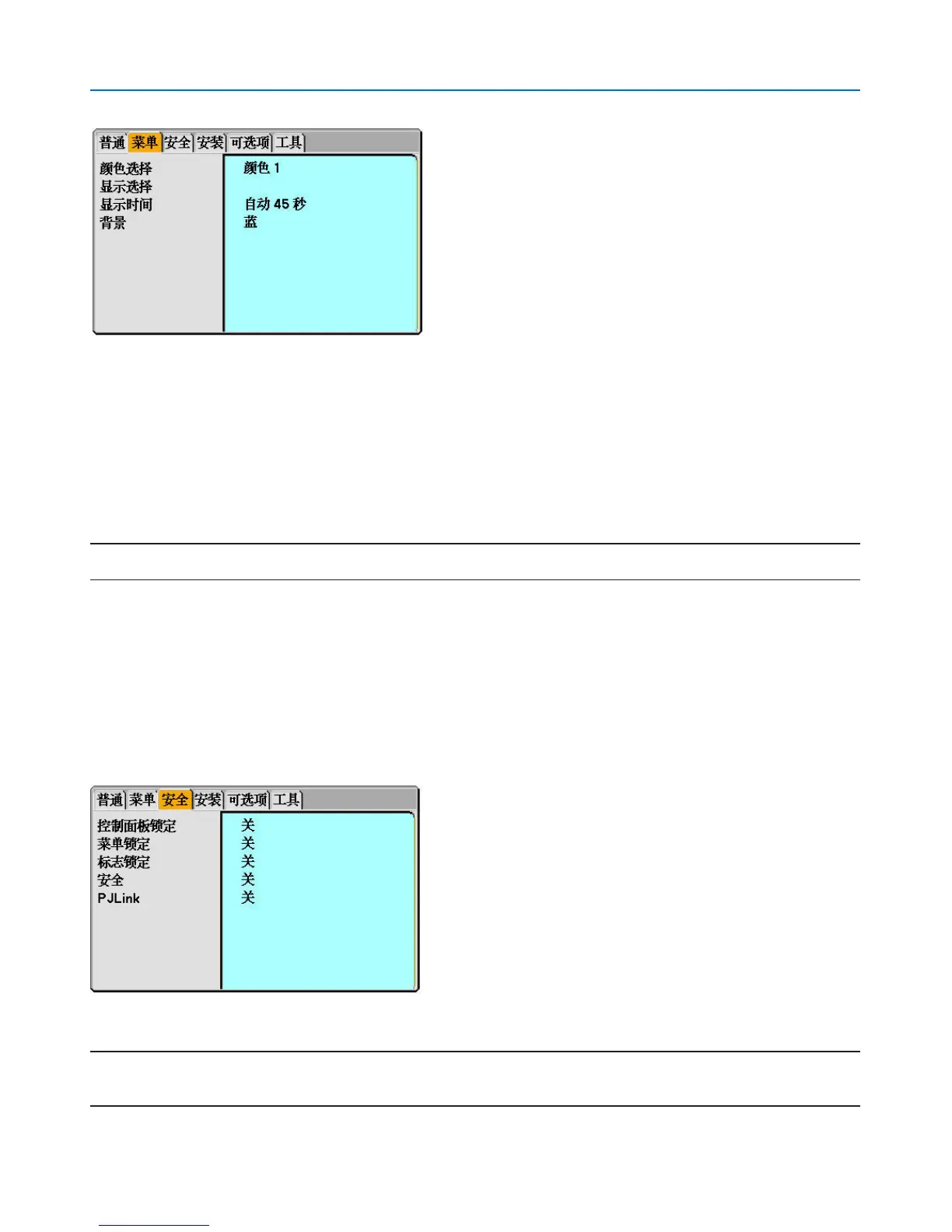 此选项可供您选择最后一次按键之后投影机需要等待多长时间关闭菜单预置选项包括