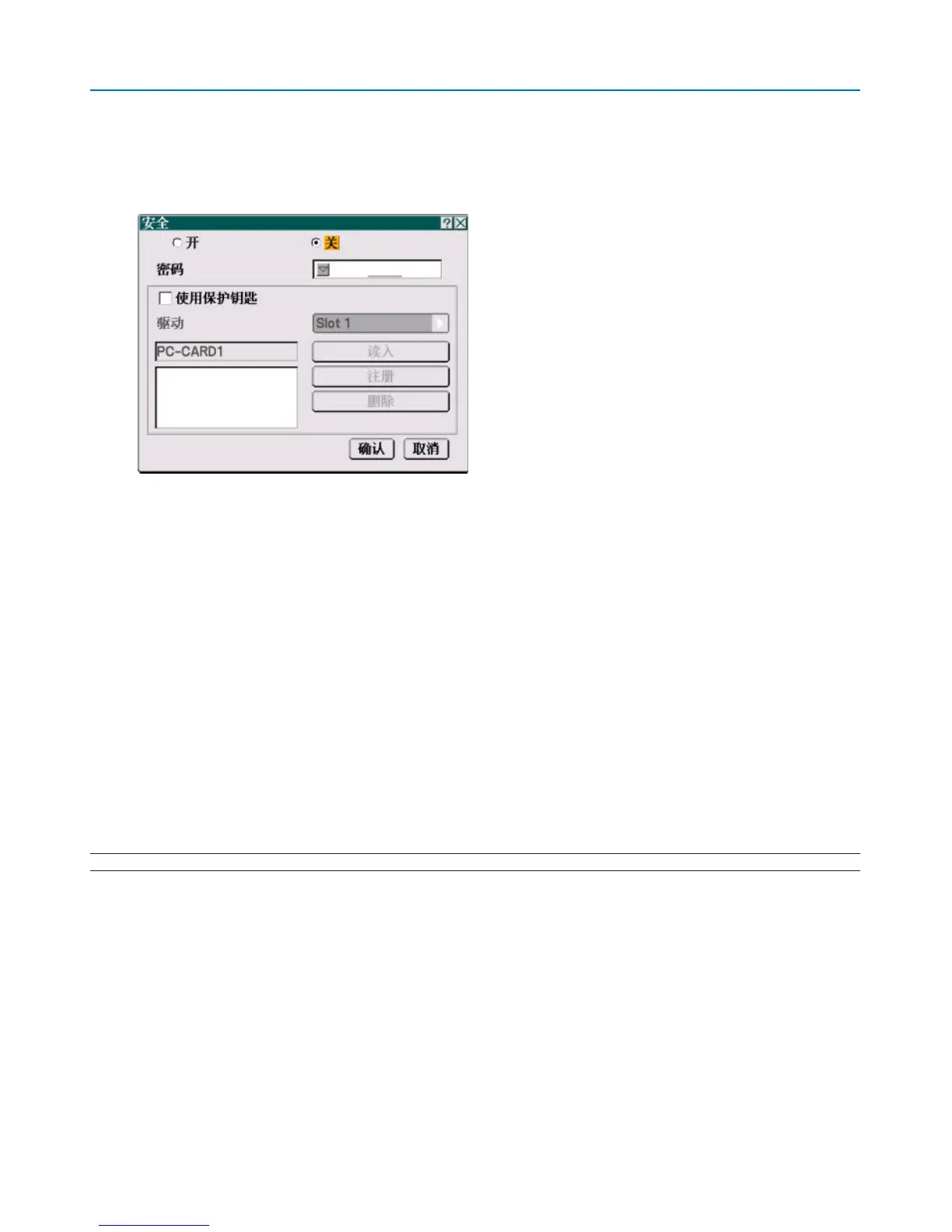 密码 ................... 使用安全功能时输入一个适当的密码