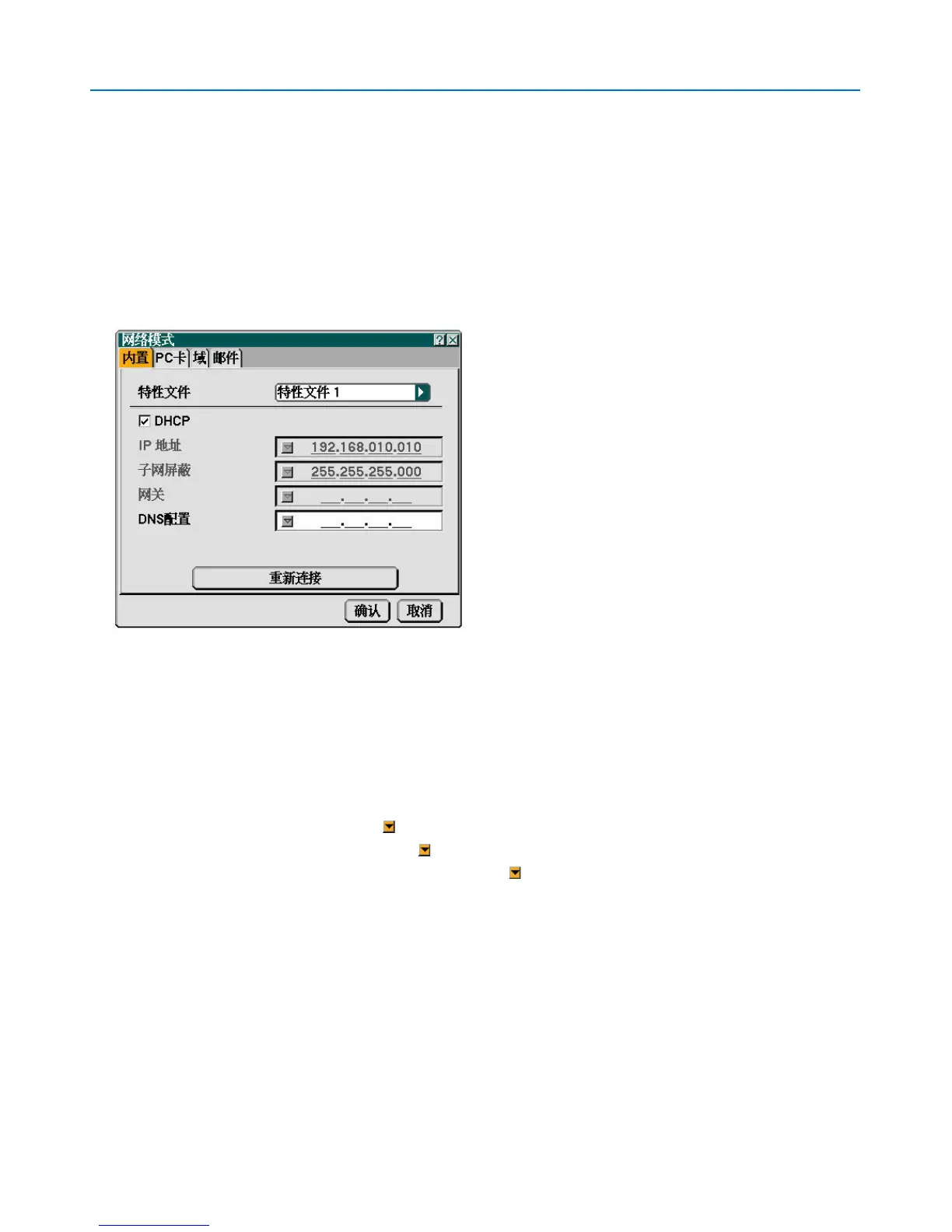 配置 .......... 输入与投影机相连网络的