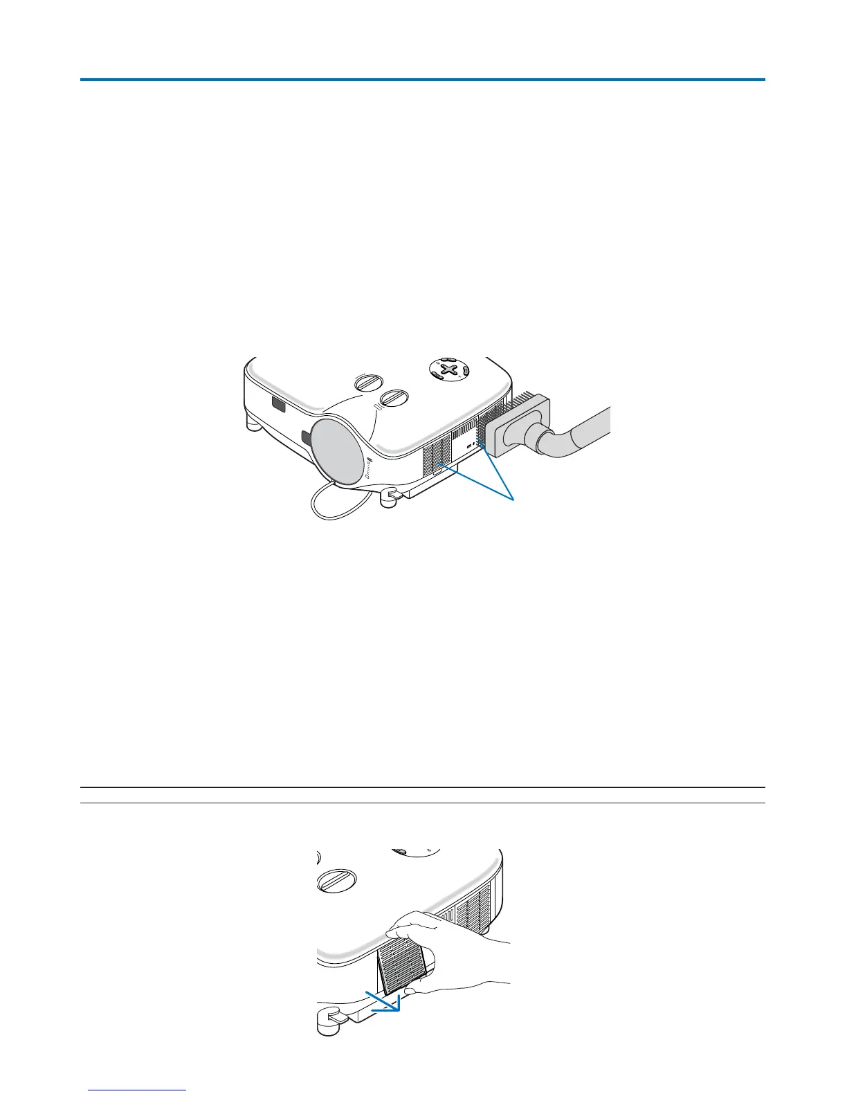 • 投影机包含高精密零件在更换滤清器时切勿使脏物和灰尘落入机内