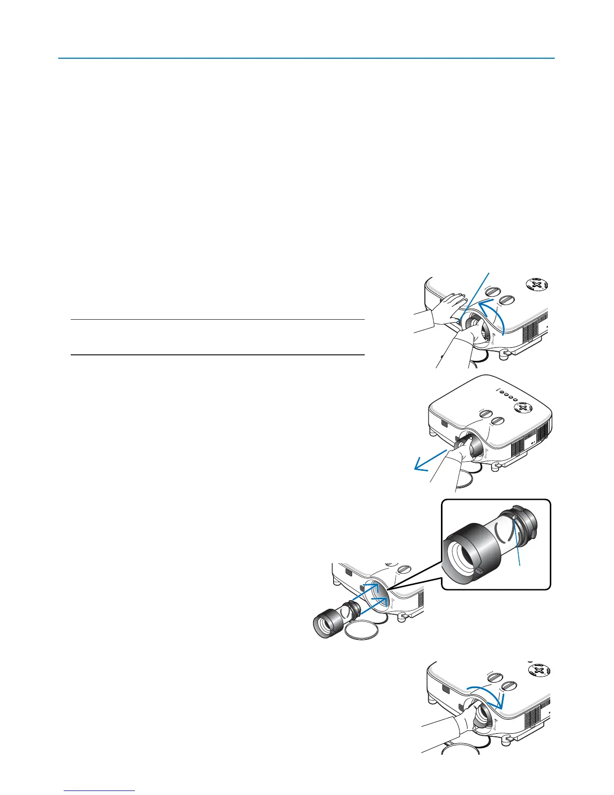 卸下或安装镜头之前确定关闭投影机等待直到冷却风扇停止为止然后关闭主电源开关
