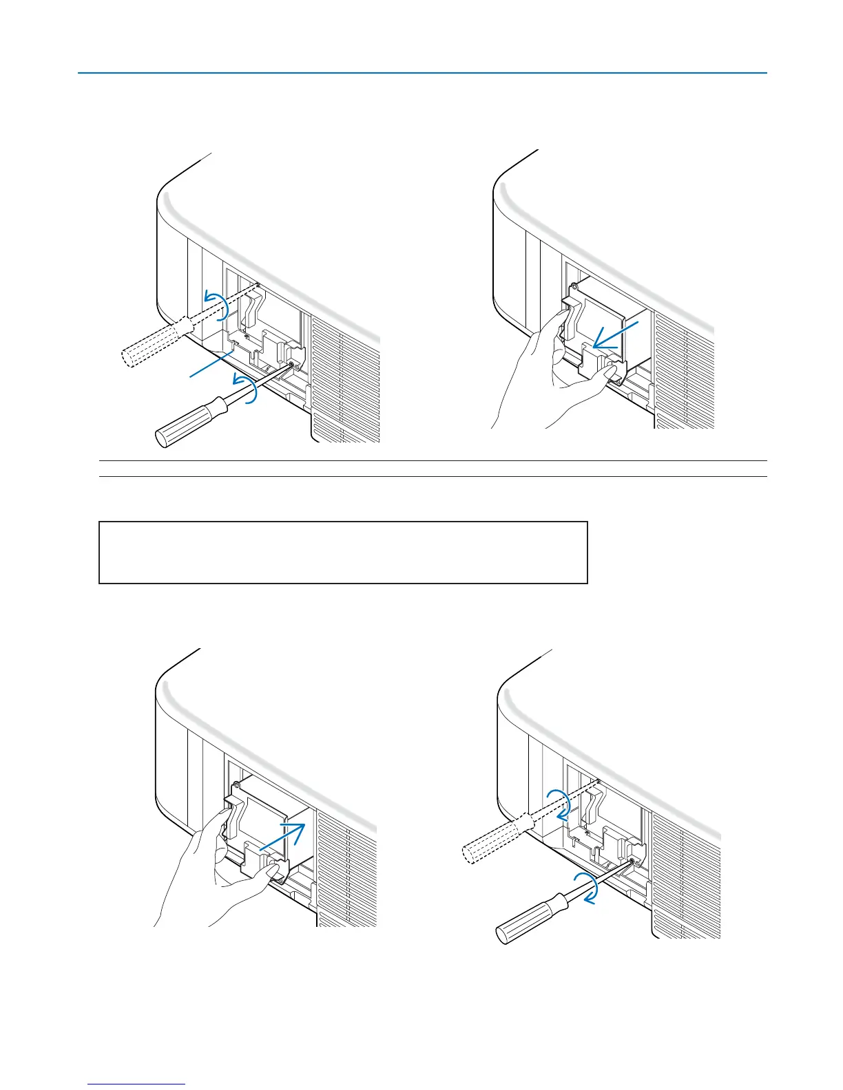2. Loosen the two screws securing the lamp housing until the phillips screwdriver goes into a freewheeling