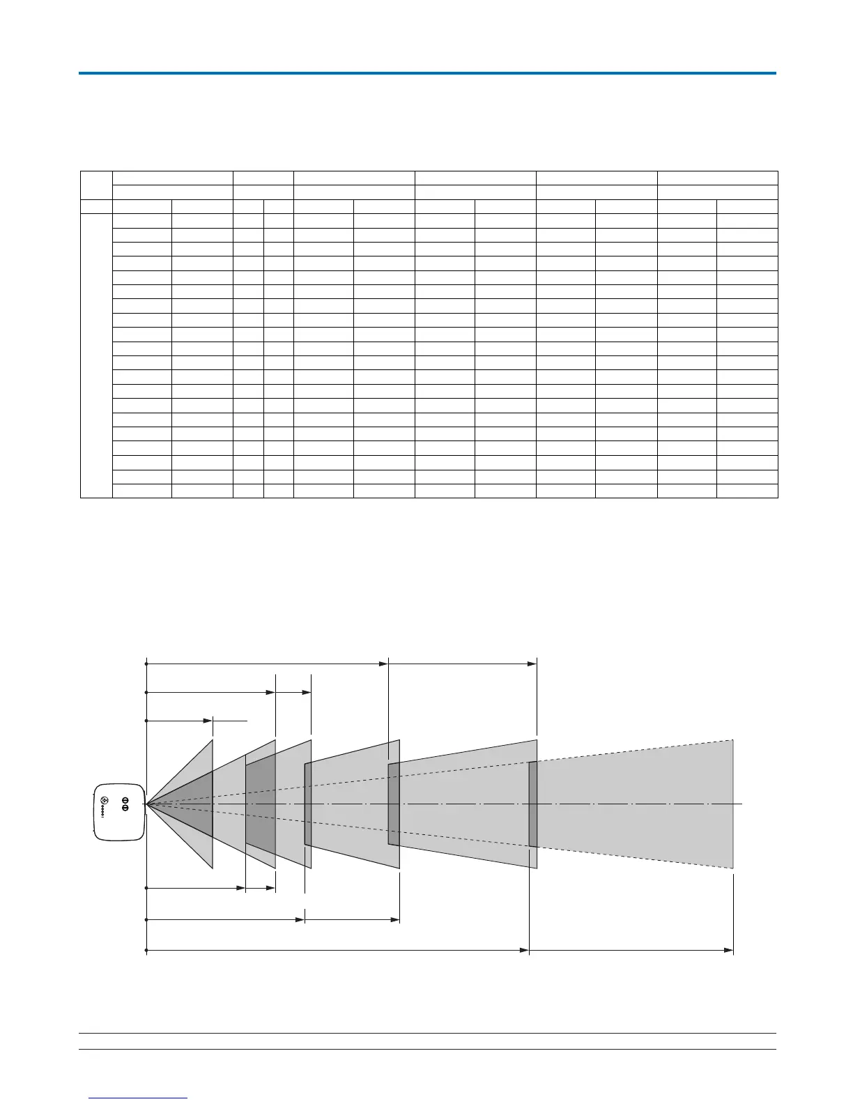 Throw distance for NP02ZL(m/inch)=H × 1.2 through H × 1.5 Distance from 0.7m to 16.1m/27.5" to 634"