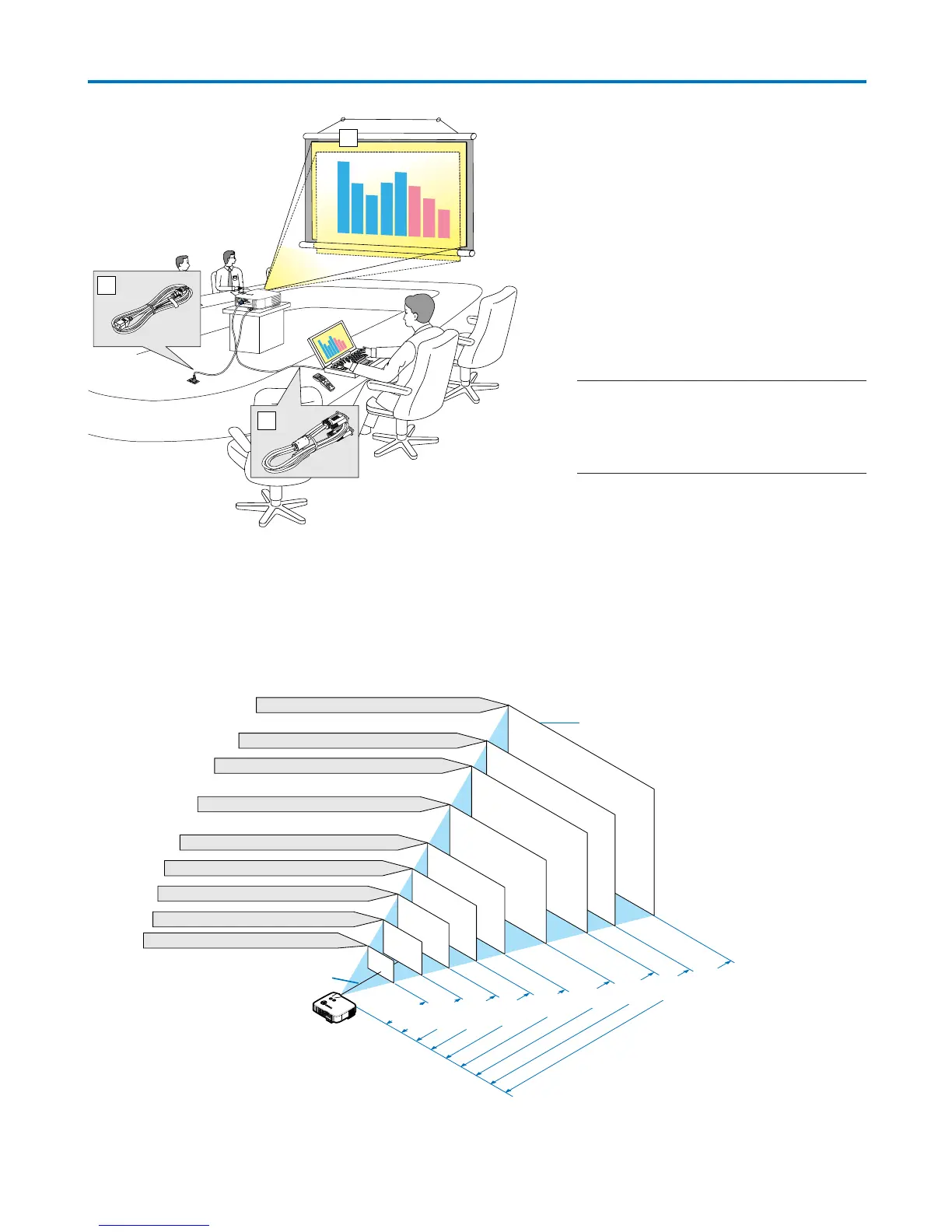 oder dem Projektionsbildschirm entfernt aufgestellt ist. Nehmen Sie die nachstehende Zeichnung als Richtlinie.