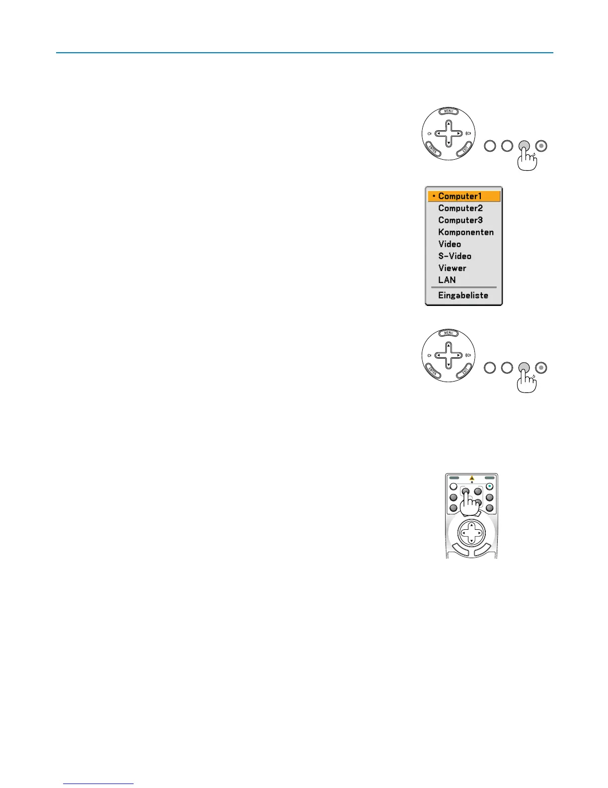 Drücken Sie eine der COMPUTER 1/2/3-, COMPONENT-, VIDEO-, S-VIDEO-,