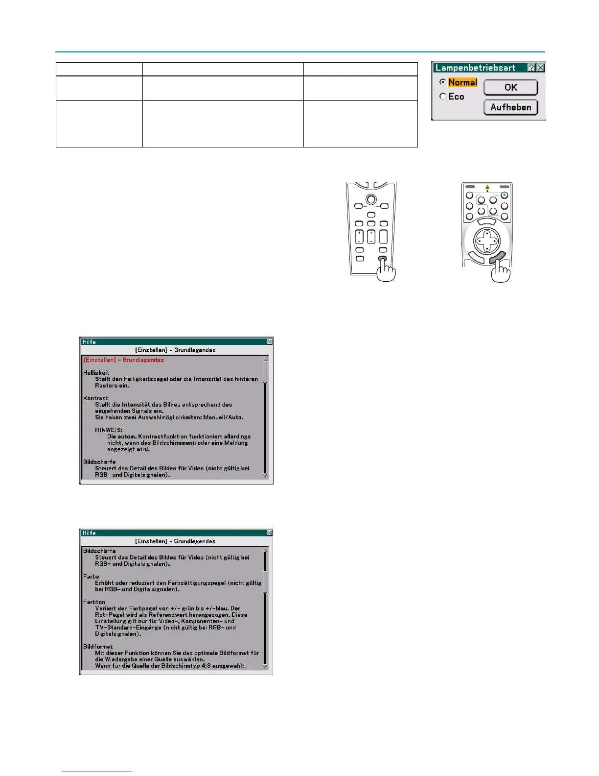 Lampenbetriebsart Beschreibung Status der LAMP-Anzeige