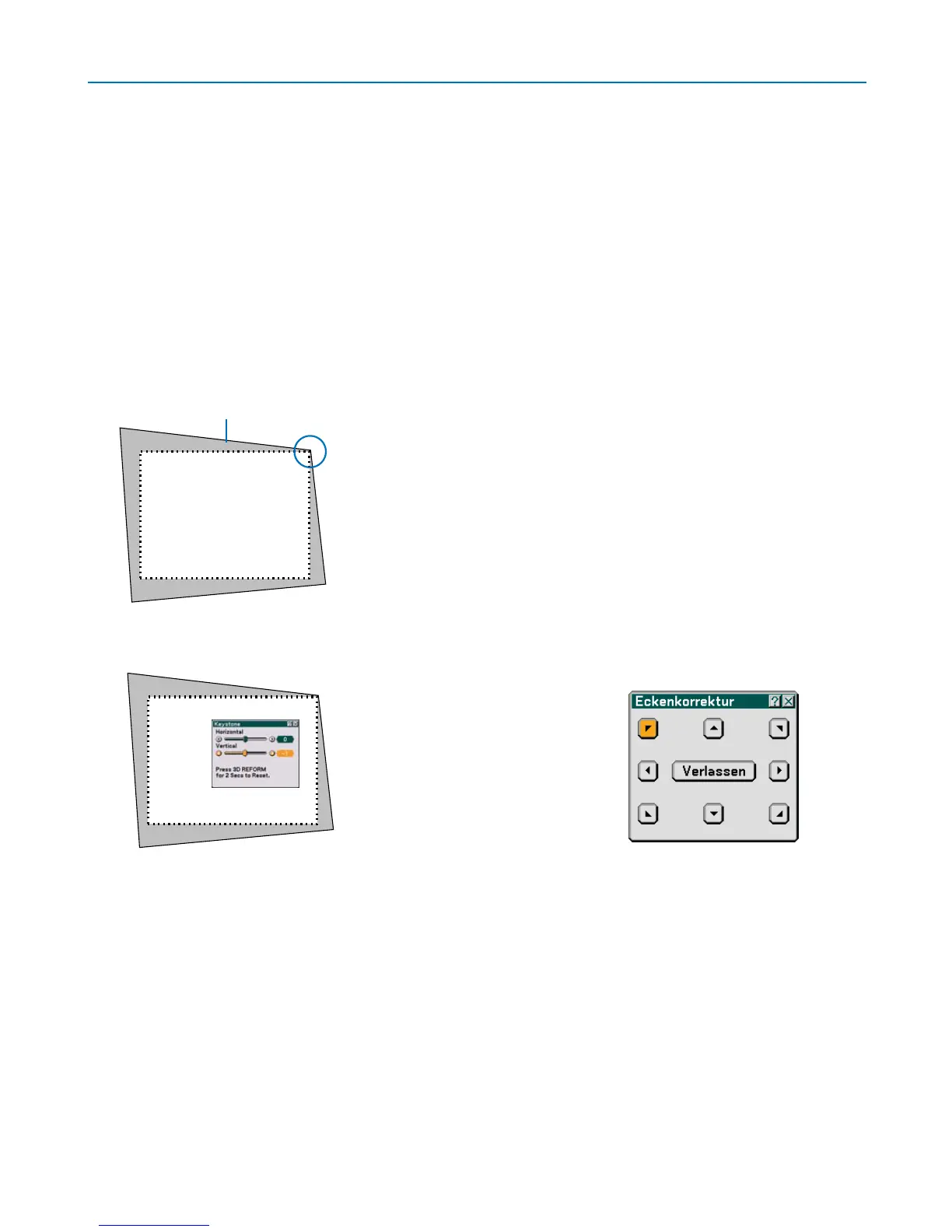 Bildschirmteil sowie die linke und rechte Bildschirmseite so zu verlängern oder zu verkürzen, dass das projizierte Bild