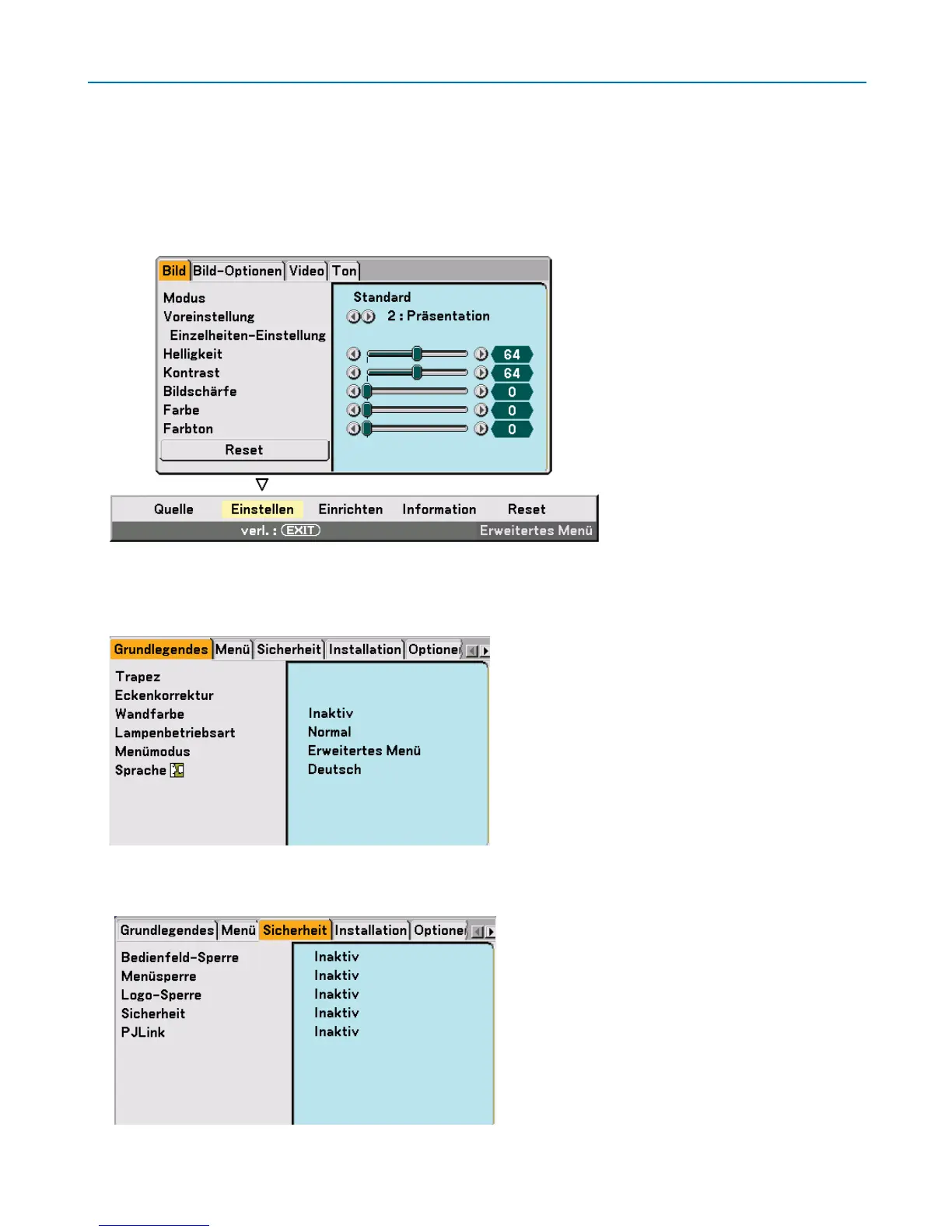 3. Drücken Sie zum Hervorheben der Seiten-Registerkarte [Sicherheit] zweimal die SELECT