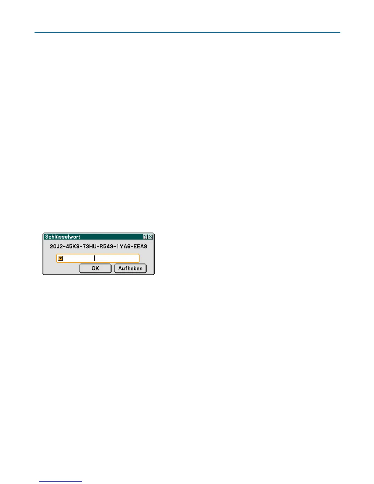 Der Schlüsselwort-Eingabebildschirm wird eingeblendet.