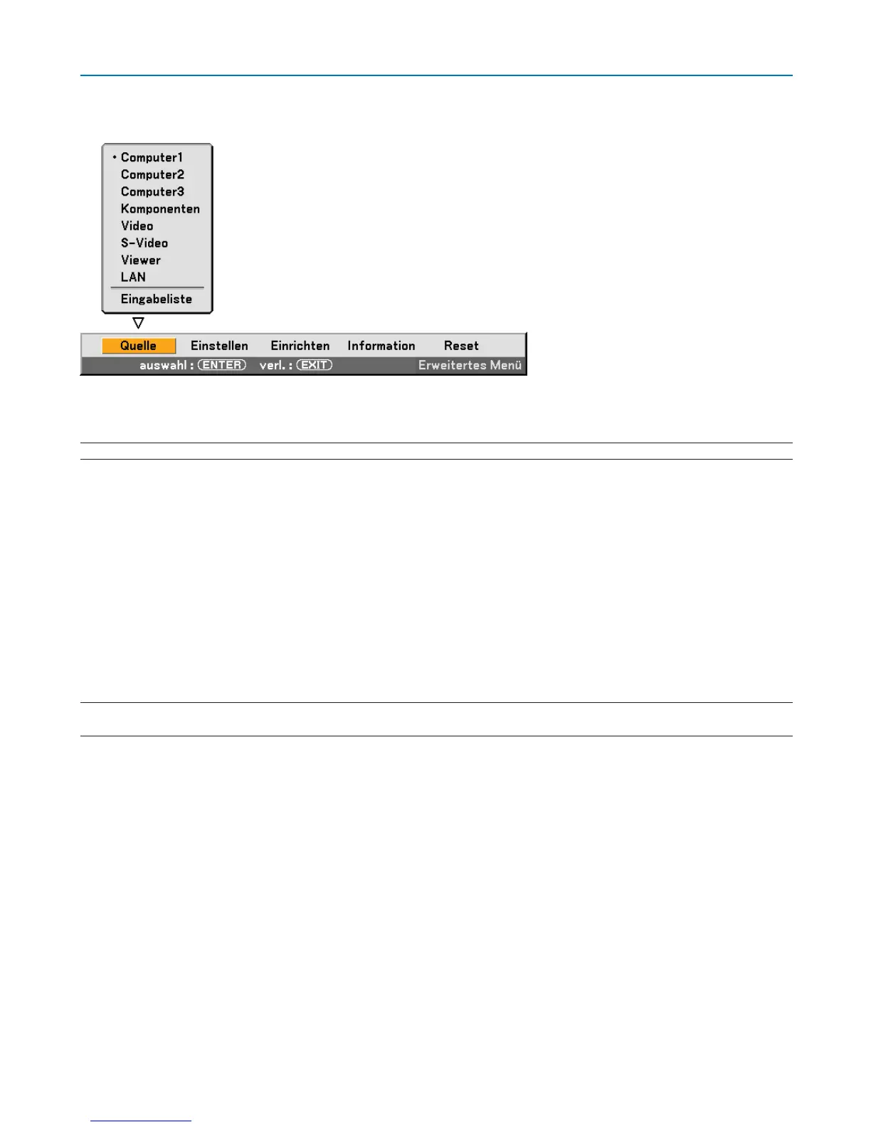 HINWEIS: Ein optionales Komponentenkabel (Komponenten-V- oder ADP-CV1-Kabel) ist für ein Komponentensignal erforderlich.