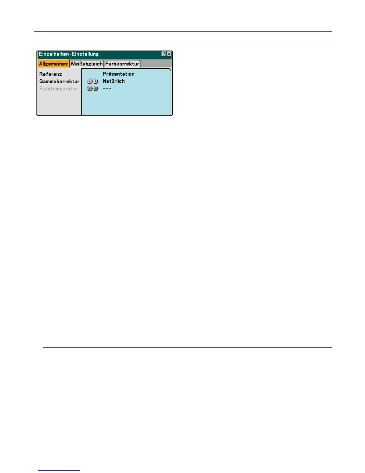 • Wenn [Präsentation] oder [Hell. hoch] in [Referenz] ausgewählt worden ist, steht diese Funktion nicht zur Verfügung.