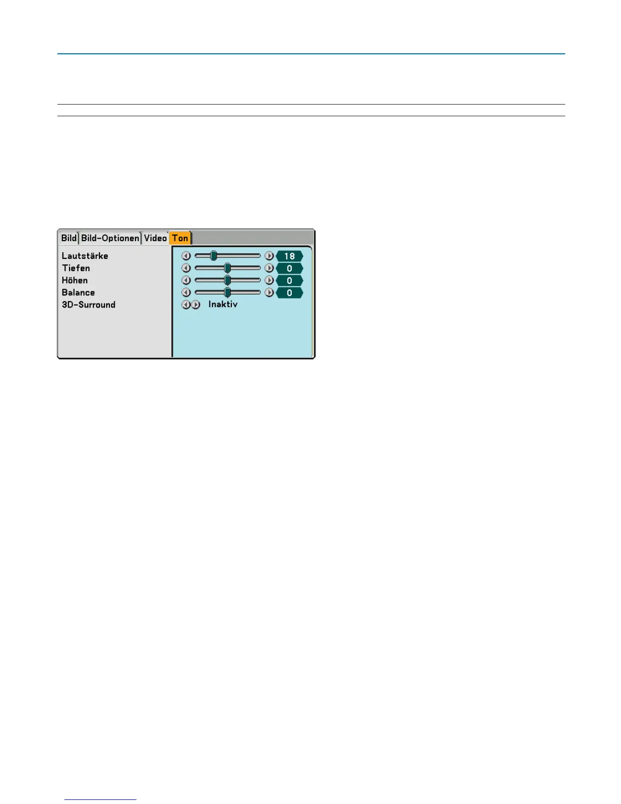 Stellt die Lautstärke, den Tiefen- und Höhenpegel, die Balance links und rechts des Projektorlautsprechers und