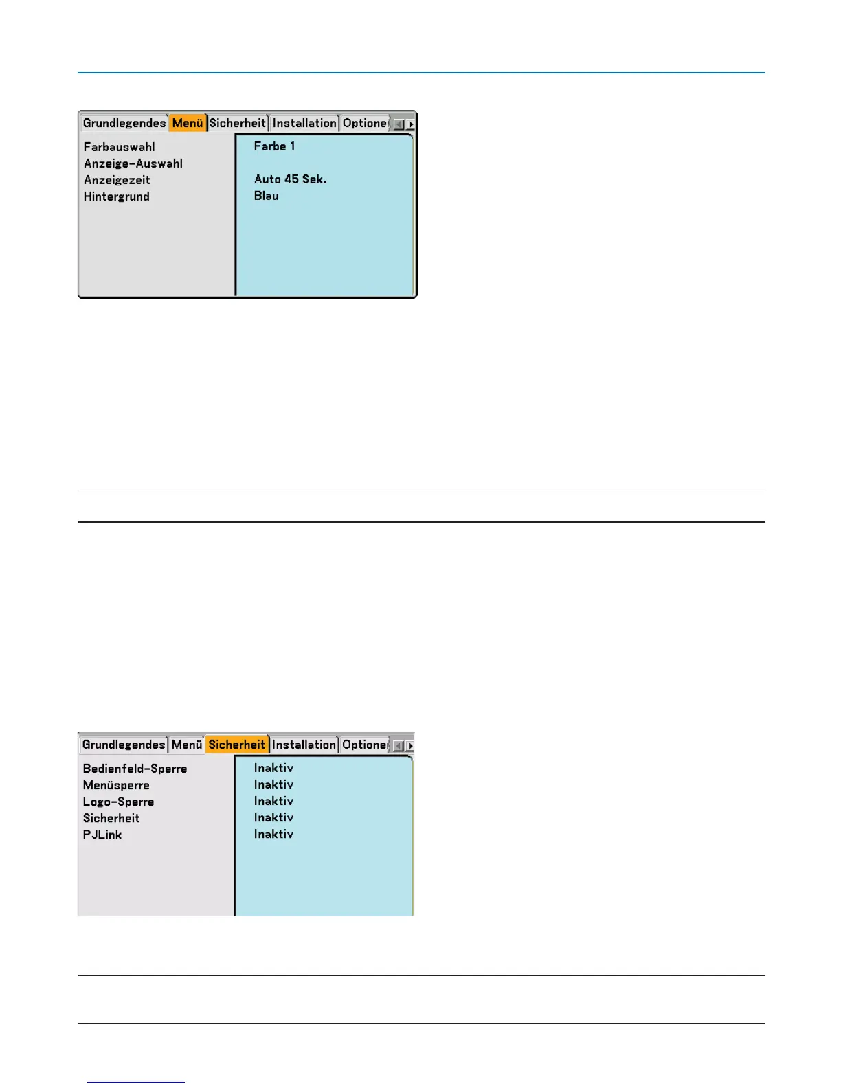 • “Projektor gesperrt” Wenn die Projektor-Sicherheit aufgehoben wird, wird die Meldung ausgeblendet.