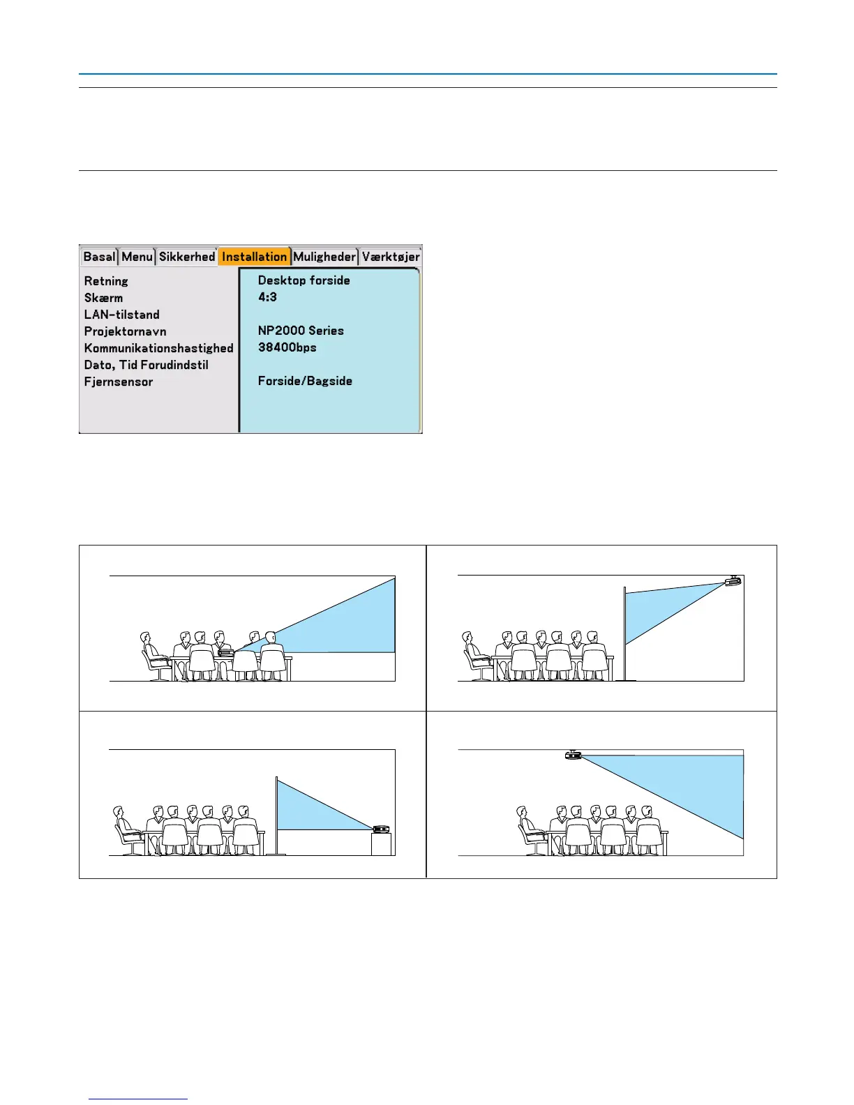 projektion, Rückprojektion und Deckenfrontprojektion