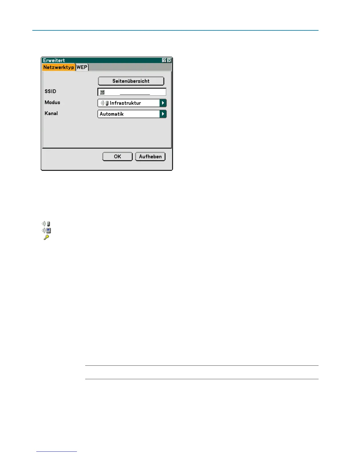 Infrastruktur .......... Wählen Sie diese Option, wenn mit einem oder mehreren Geräten kommuniziert wird, die über einen Zu-