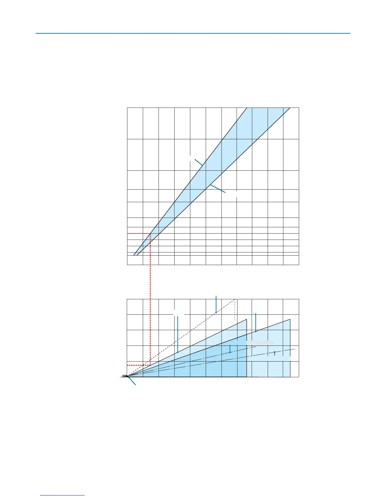 Das untere Diagramm zeigt an, dass die vertikale Entfernung zwischen dem Projektorboden und der Bildschirmoberseite