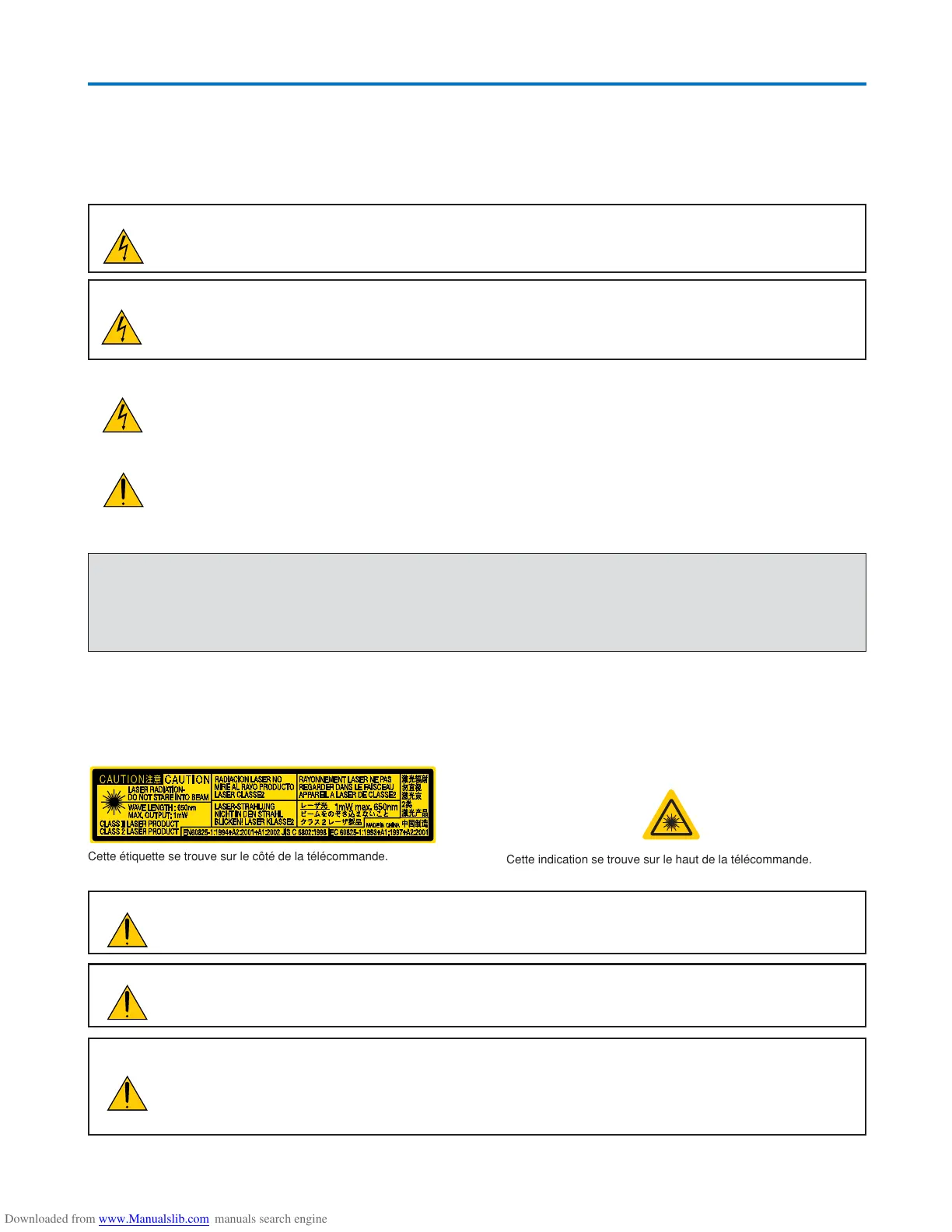 L'utilisation de commandes, de réglages ou la réalisation de procédures autres que celles spécifiées ici