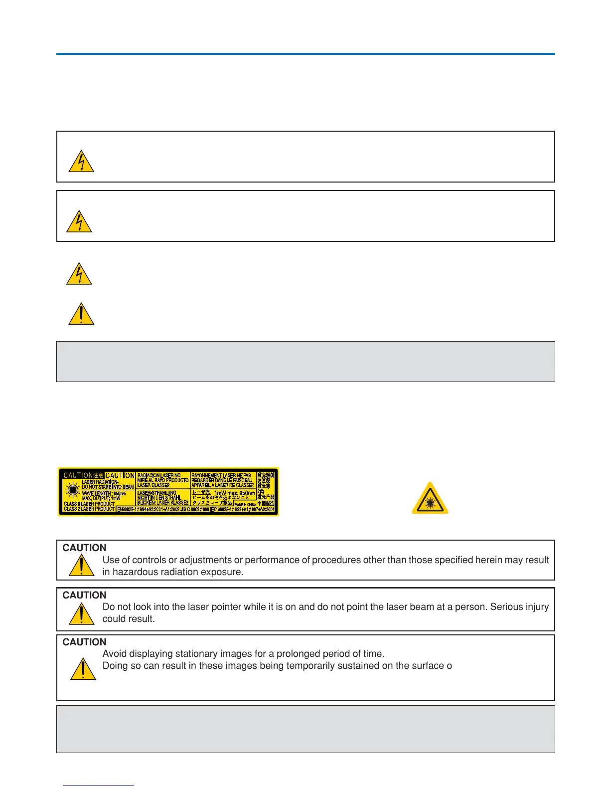 Avoid displaying stationary images for a prolonged period of time.