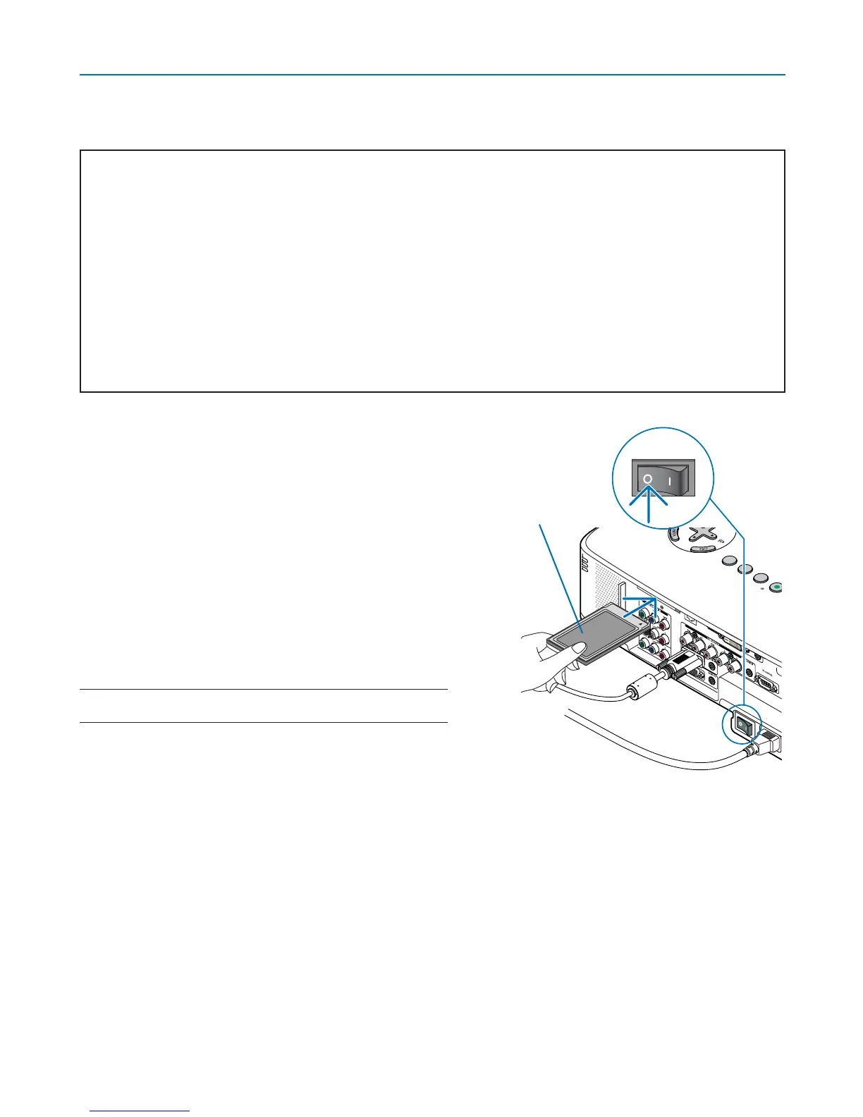 projector malfunction or damage to the wireless LAN card. If the projector will not work correctly, turn off the