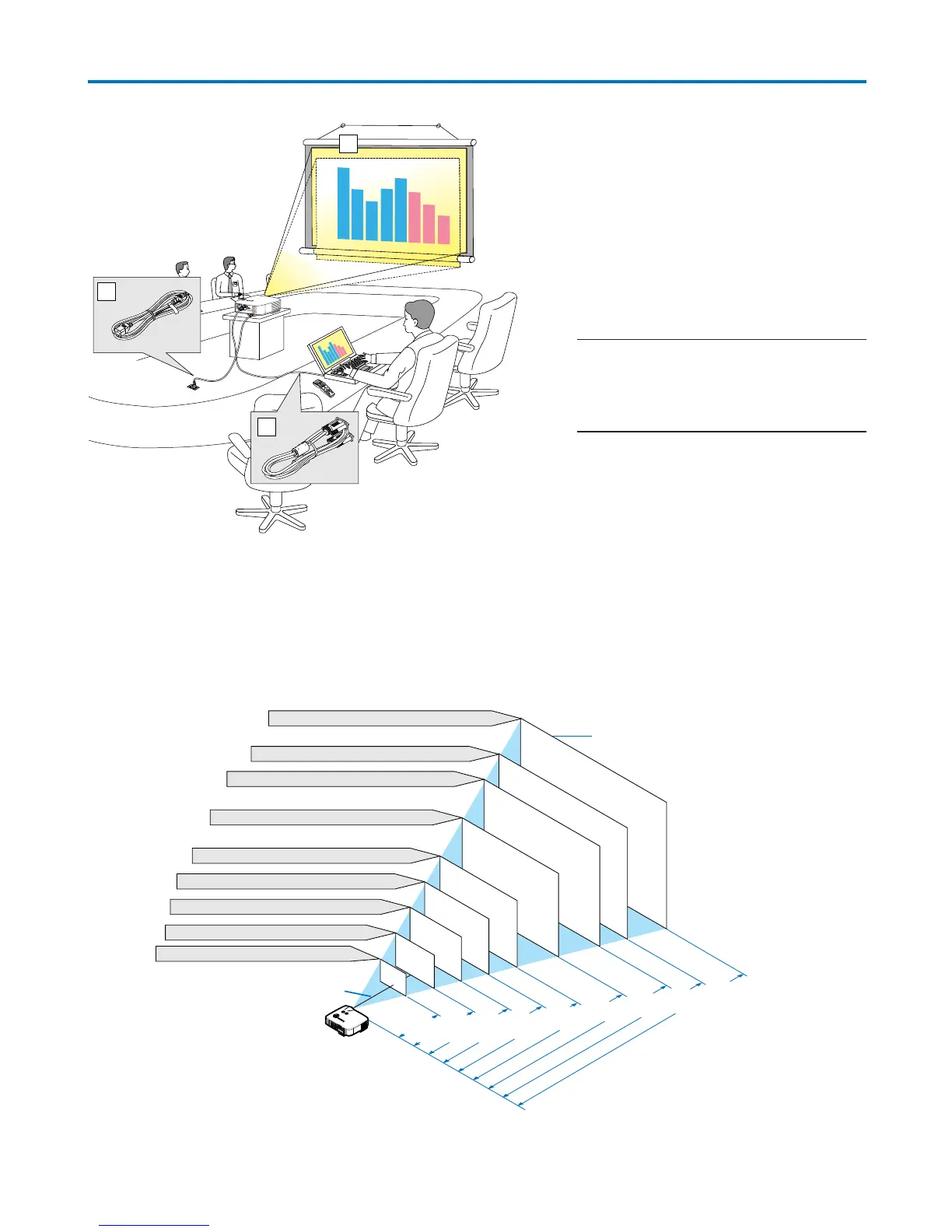 18,2 m du mur ou de l'écran. Utiliser le dessin suivant comme guide.