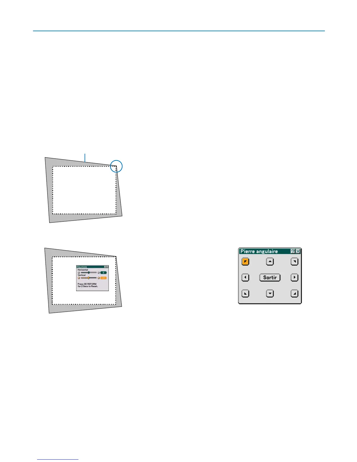 gauche ou droite de l'écran plus longue ou plus courte de sorte que l'image projetée soit rectangulaire.