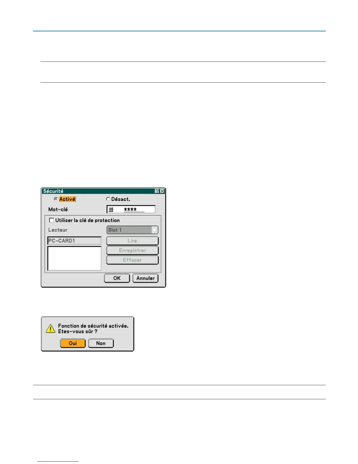 REMARQUE : Une carte PC peut être utilisée comme clé de protection. Il est possible de sauter la saisie du mot-clé en insérant une