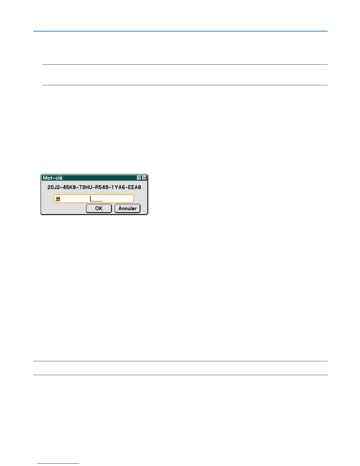 REMARQUE : N'oubliez pas votre mot-clé. Toutefois, si vous oubliez votre mot-clé, NEC ou votre revendeur vous fourniront votre