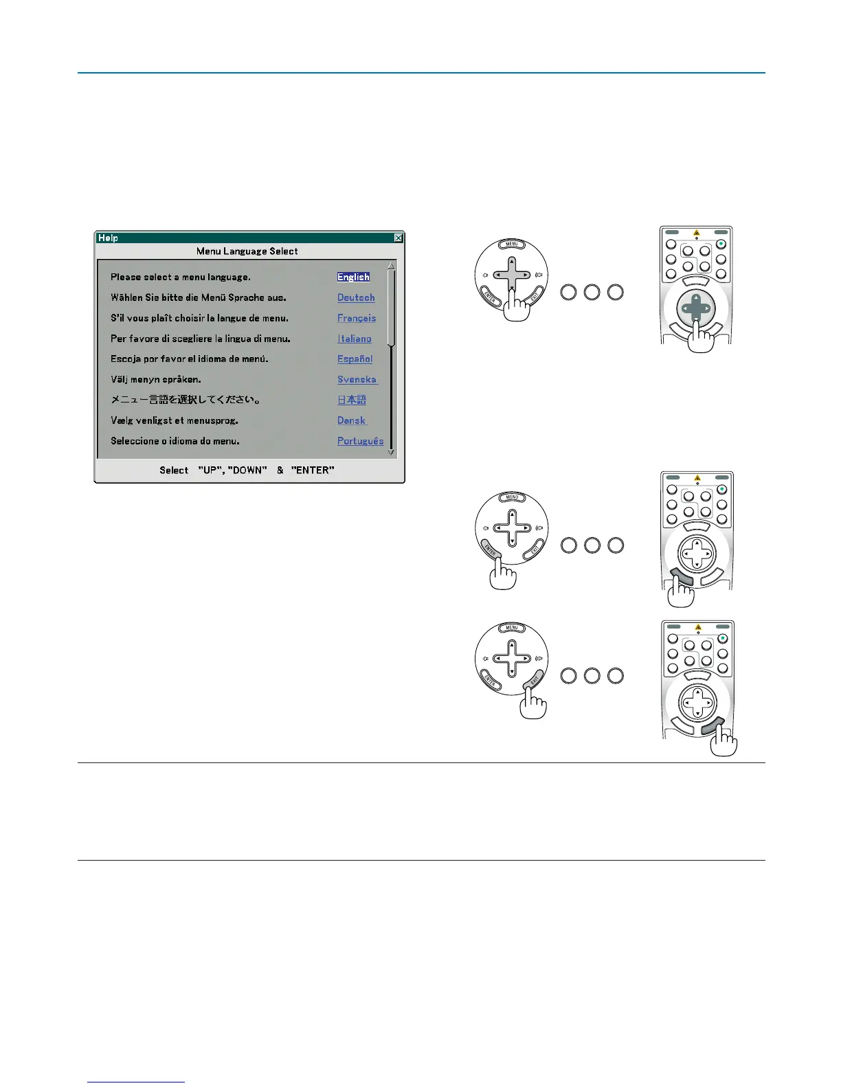 When you first turn on the projector, you will get the Startup menu. This menu gives you the opportunity to select one