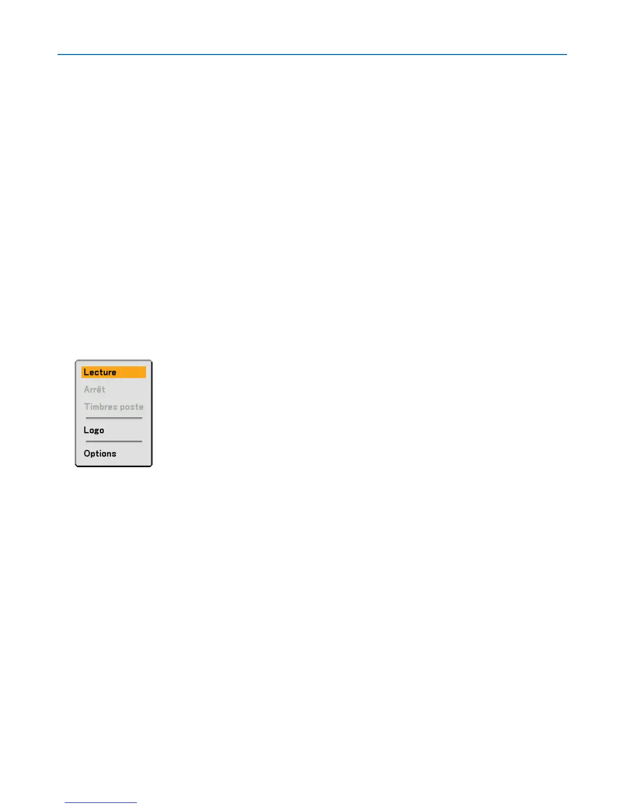 Le menu de la visionneuse apparaît en appuyant sur la touche MENU de la télécommande ou du boîtier du