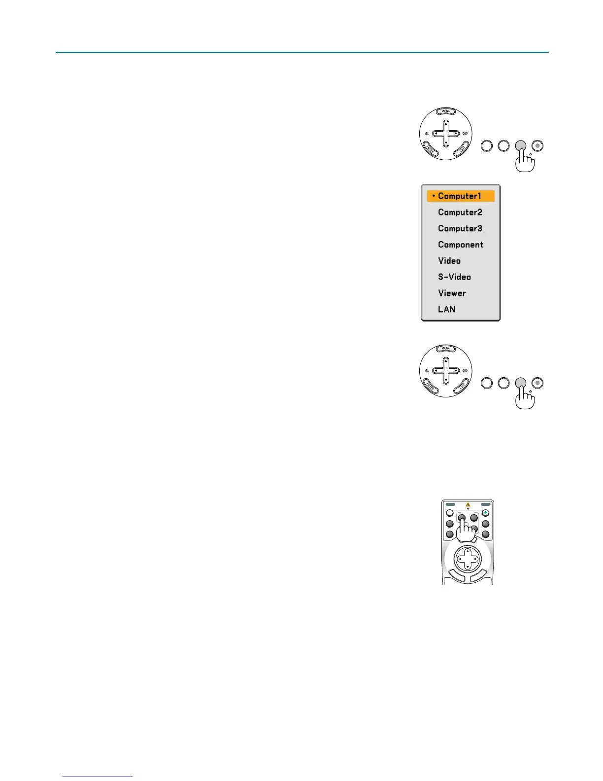 Press any one of the COMPUTER 1/2/3, COMPONENT, VIDEO, S-VIDEO,