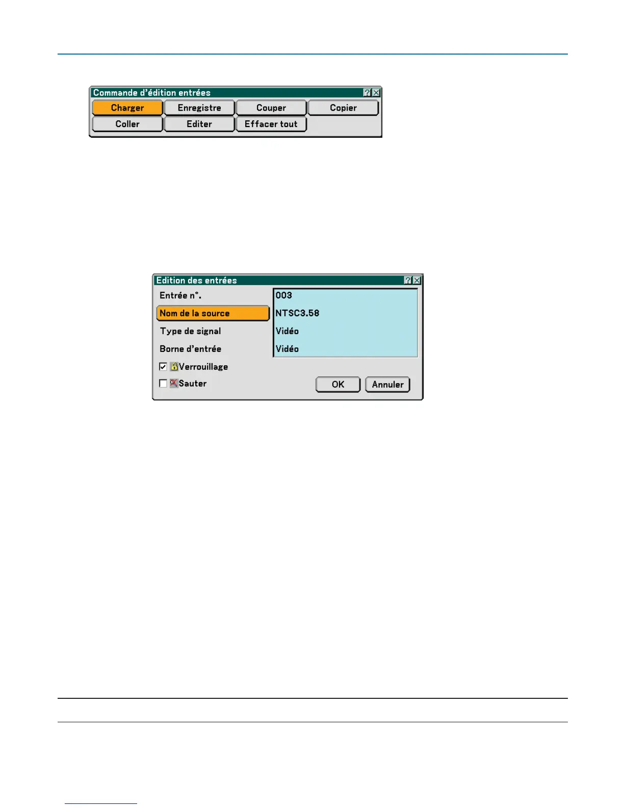Copier.................... Vous permet de copier un signal sélectionné dans la liste et de la placer sur le “porte-papiers” du projecteur.