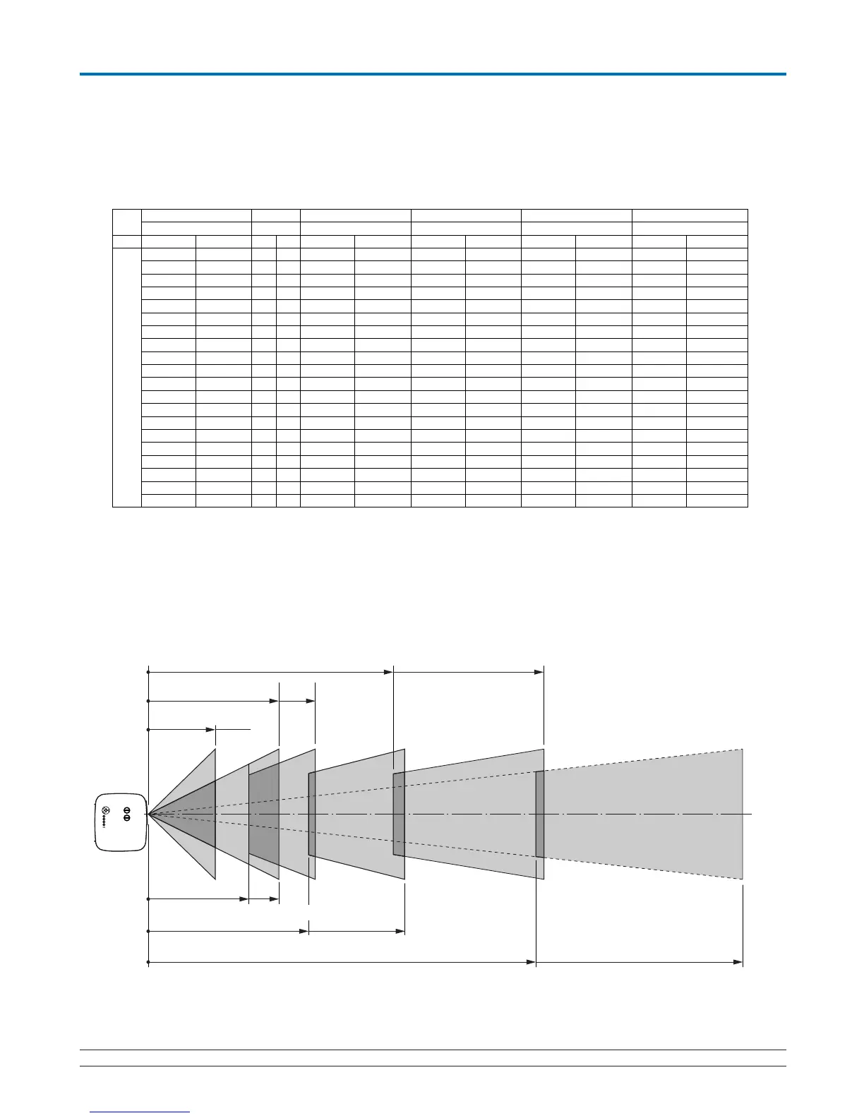 Distance de projection pour NP05ZL(m/pouce)=H × 4,6 jusqu’à H × 7,0 Distance de 7,65m à 74,36m/301,3" à 2927,5"