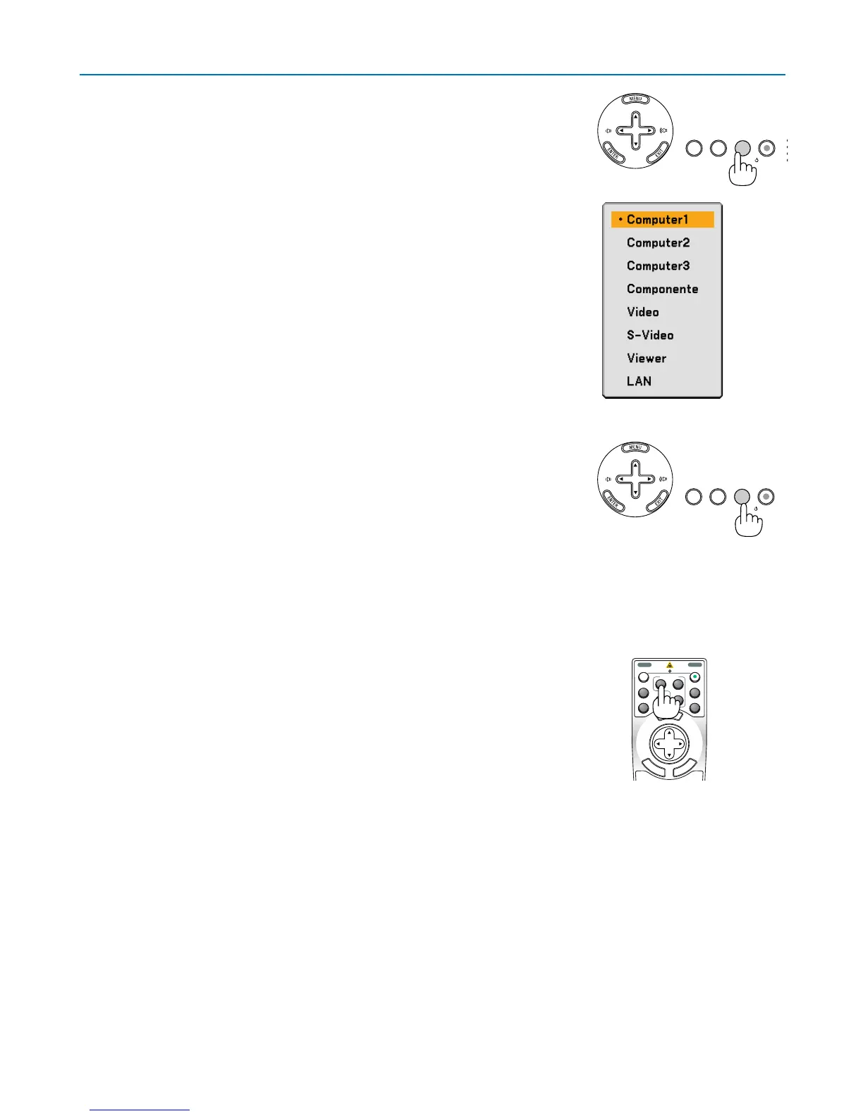 Premete il tasto COMPUTER 1/2/3, COMPONENT, VIDEO, S-VIDEO, VIEWER