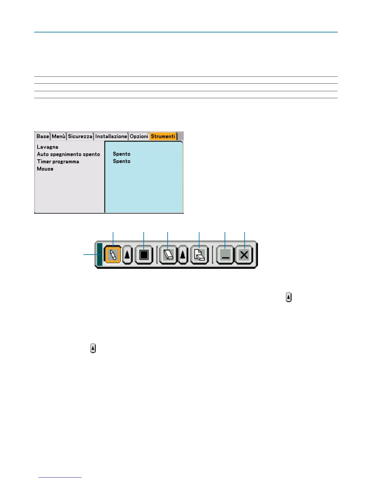 Penna ............... Fare clic e trascinare per disegnare linee a mano libera. Fate clic con il tasto sinistro