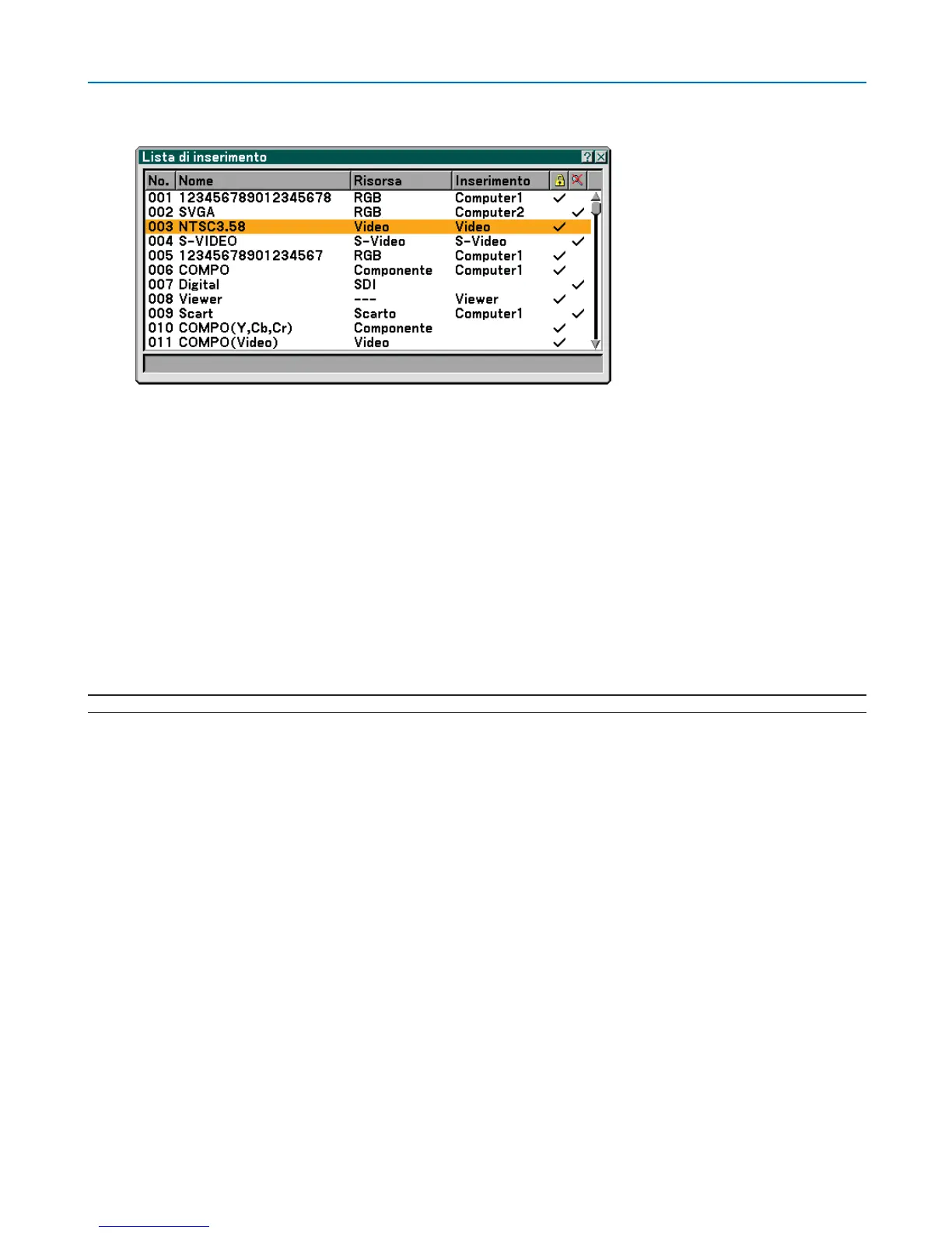 gnale registrato può essere caricato in qualunque momento dalla [Lista di inserimento].