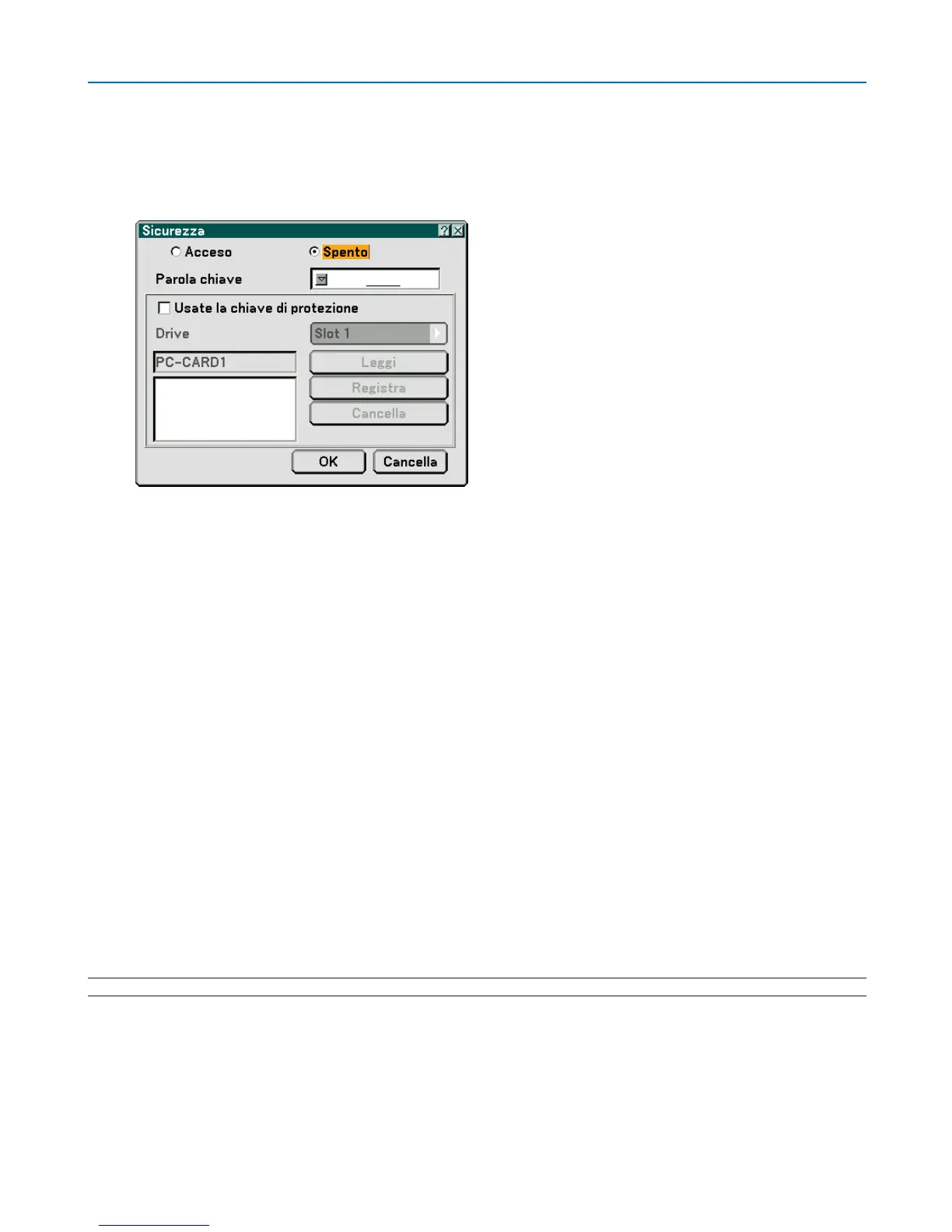 di protezione ......... Selezionate questa casella per bloccare il proiettore quando usate una scheda PC. Per usare una parola