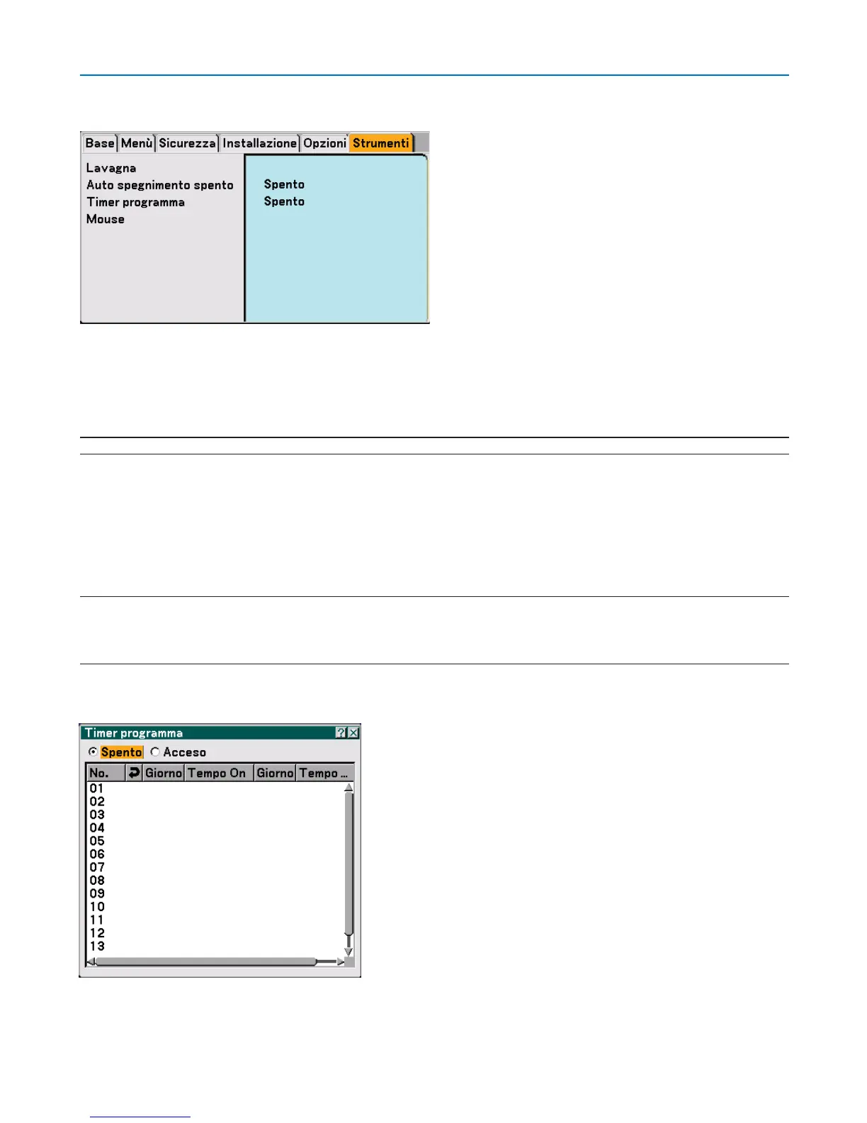 Questa opzione consente di attivare o disattivare automaticamente il proiettore a un’ora specifica.