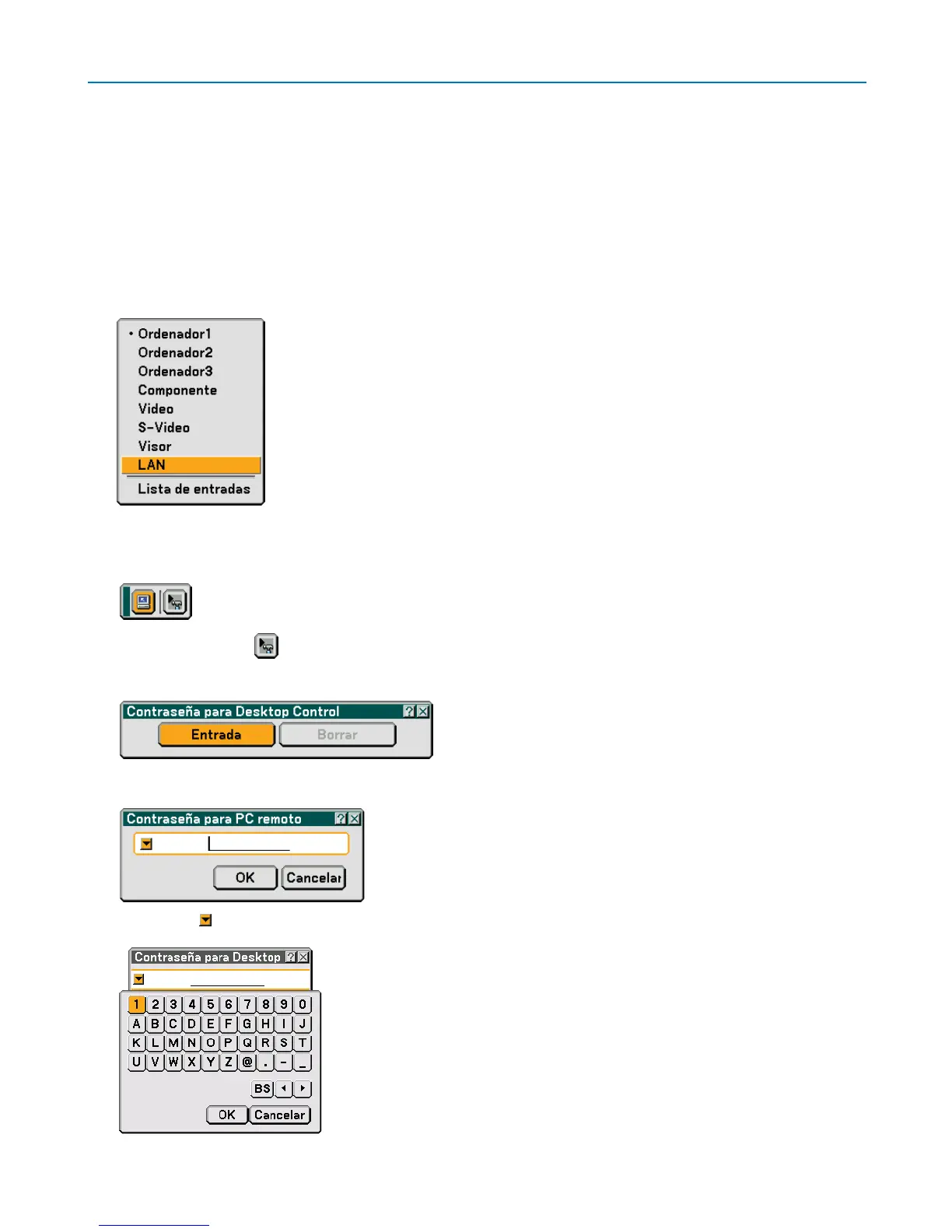 El mensaje se visualizará sólo cuando no se haya asignado una contraseña para el programa Desktop Control Utility 1.0.