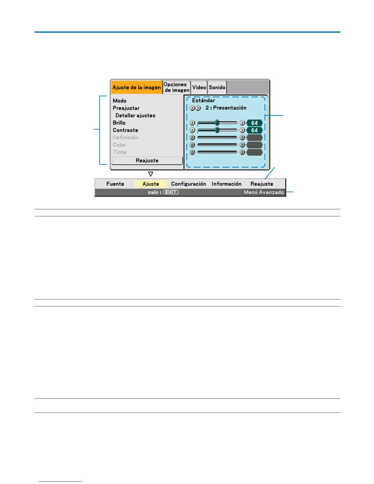 7. Repita los pasos 2 - 6 para ajustar un elemento adicional, o pulse el botón EXIT en la cubierta del proyector