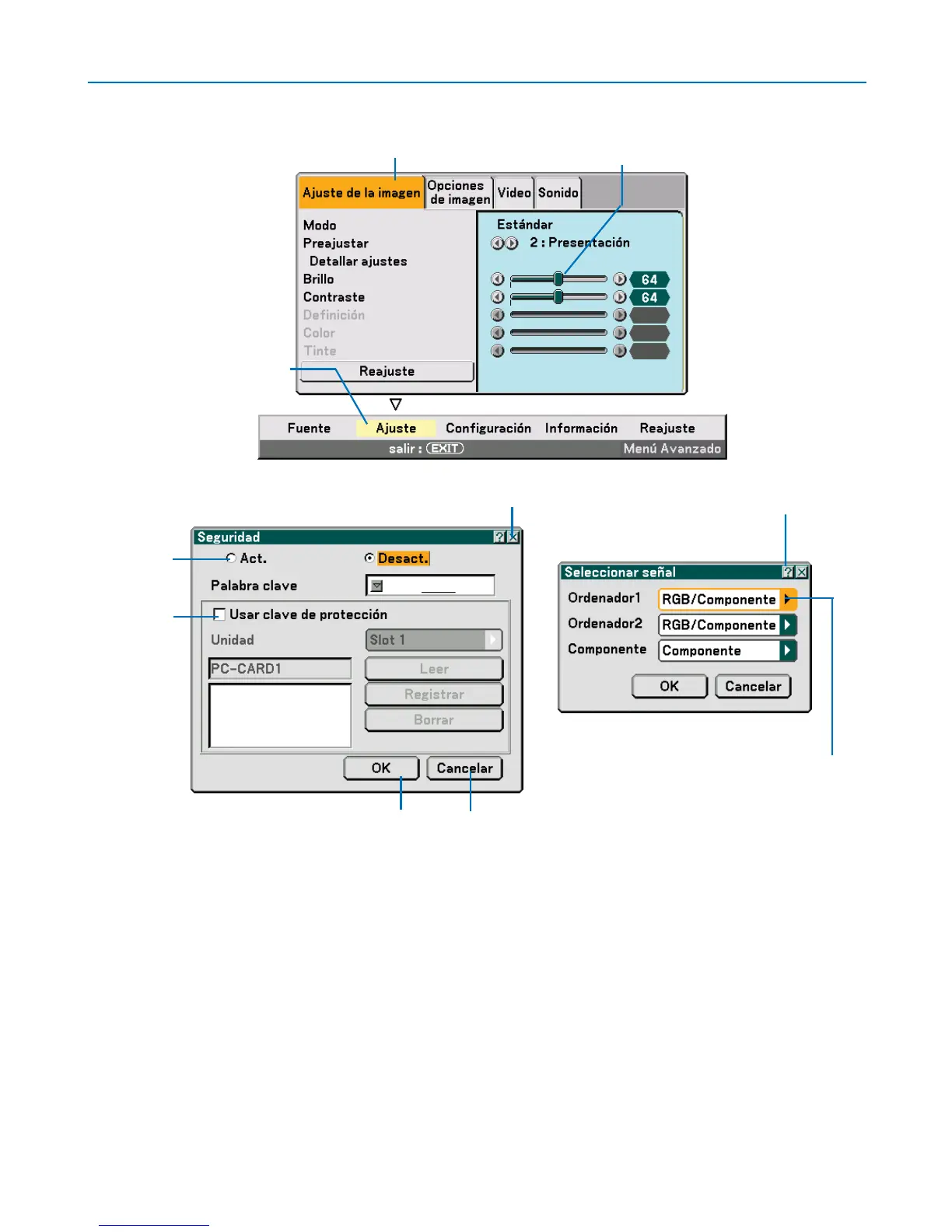 Barra deslizante ..... Indica ajustes o la dirección de ajuste.