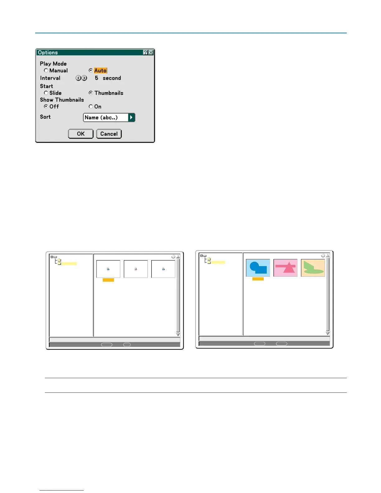 Auto ...................... Plays back slides automatically when the Viewer source is selected.