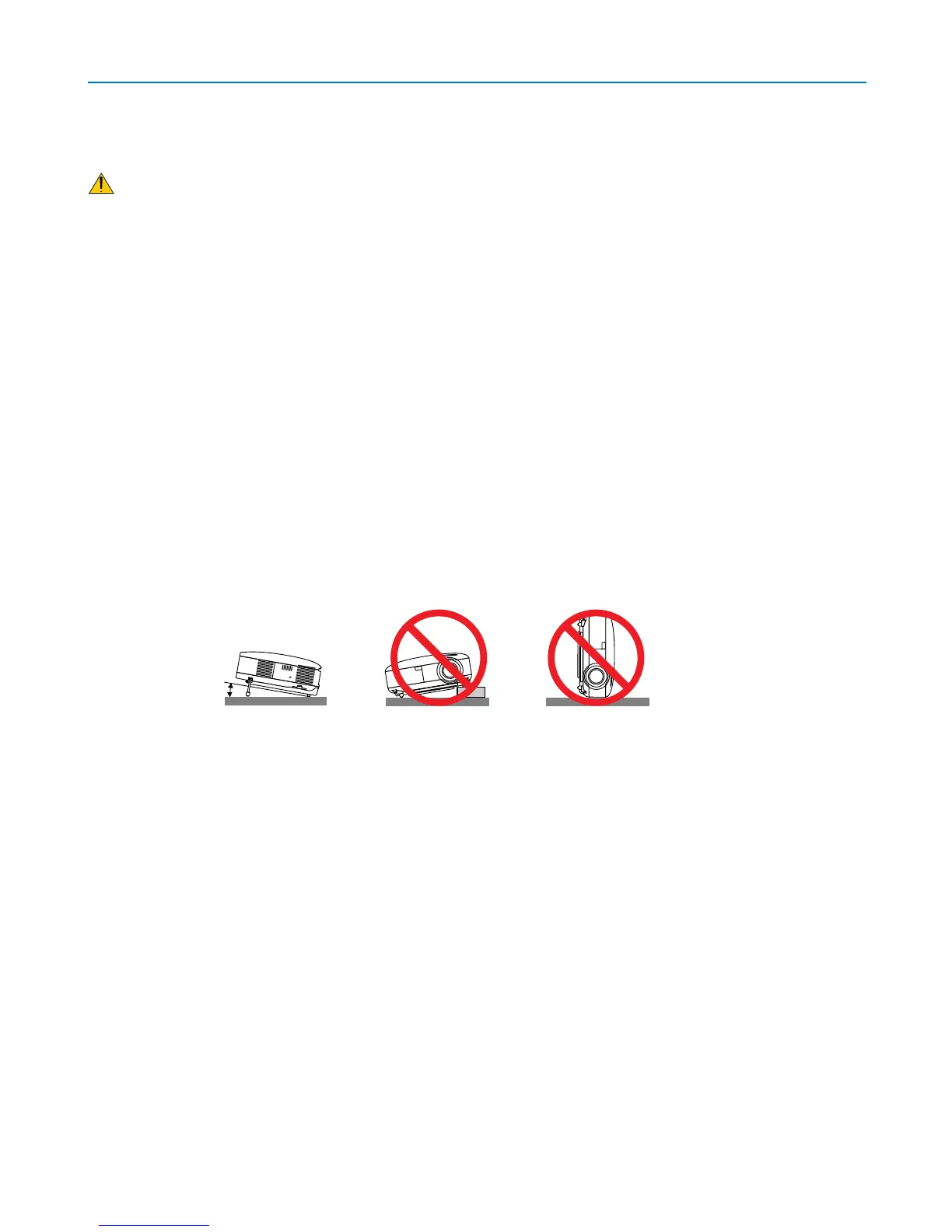 Projektorn får inte lutas mer än 10 grader och får inte installeras på ett annat sätt än på ett bord eller hängande i taket,