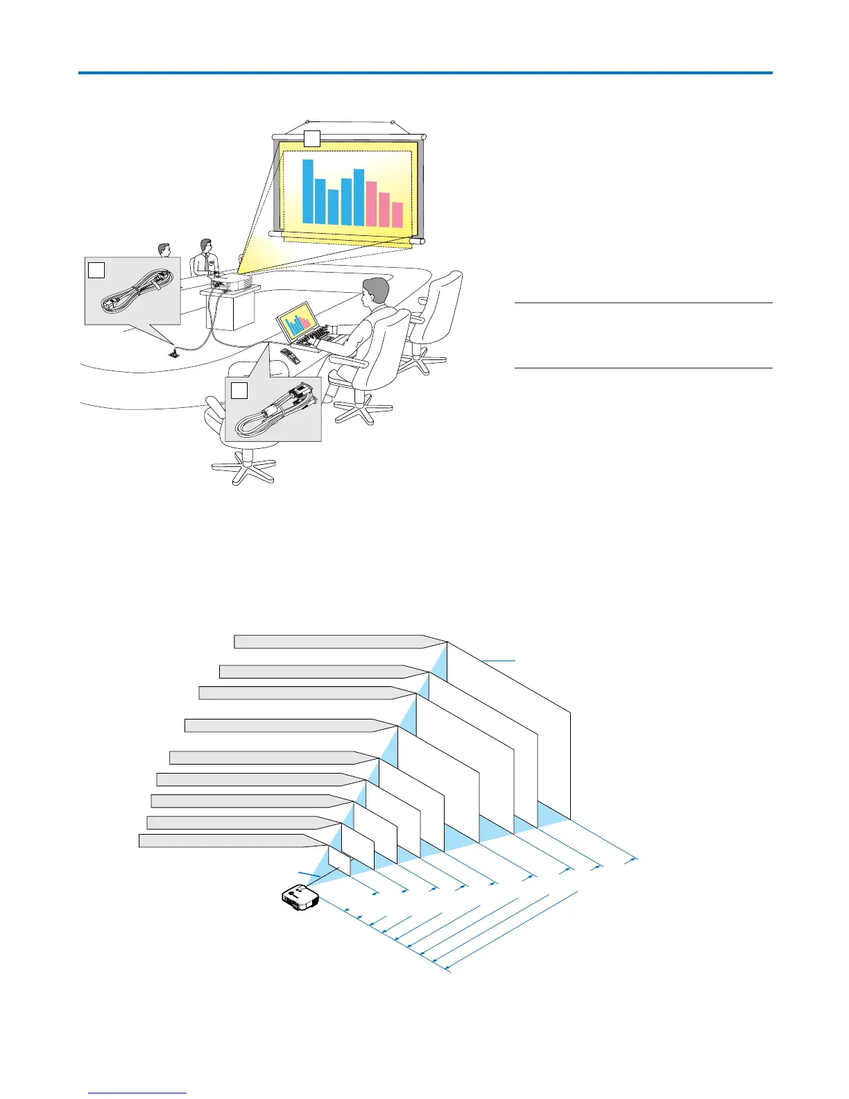 Ju längre projektorn befinner sig från skärmen eller väggen, desto större blir bilden. Minsta möjliga bild är ungefär 30