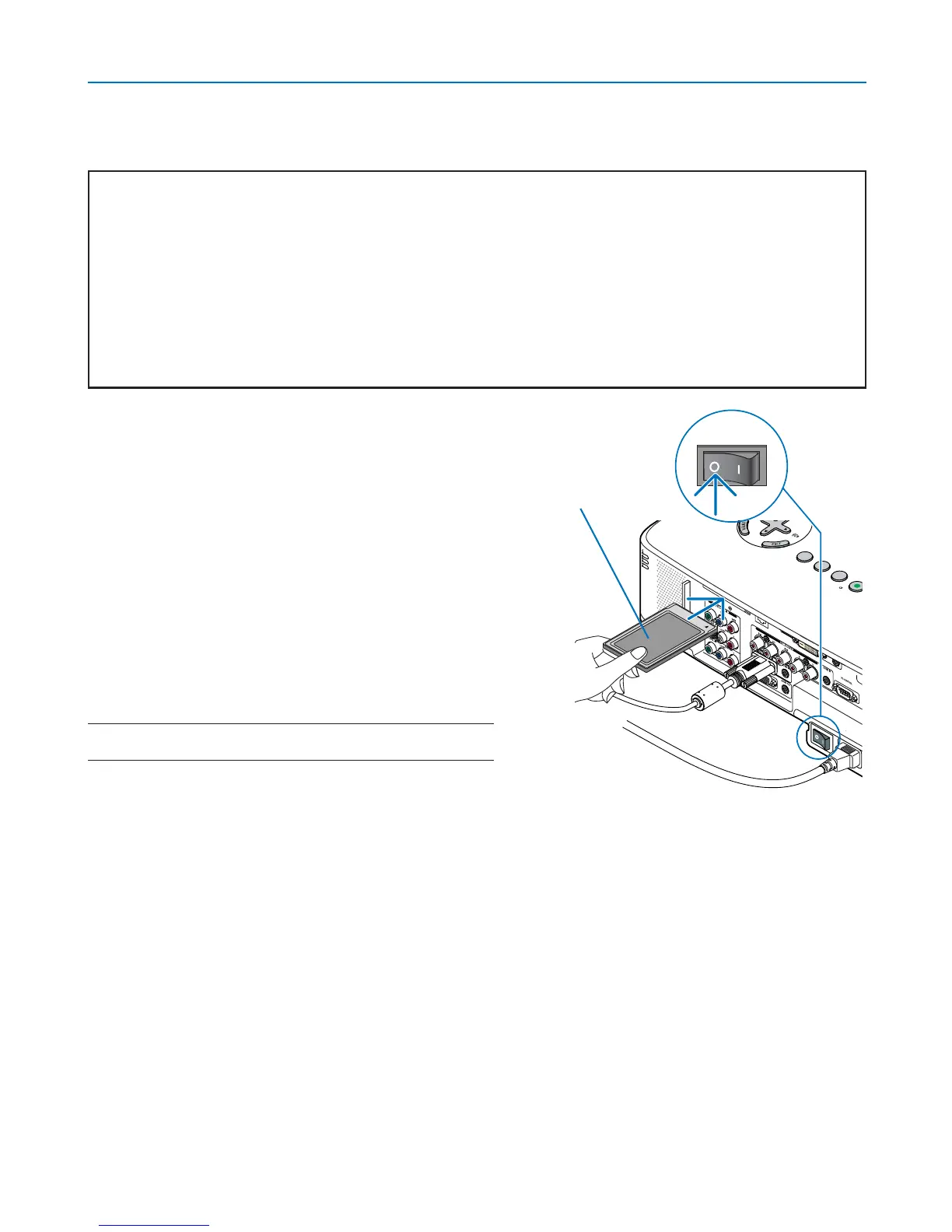 tet för trådlöst LAN sitter i projektorns PC CARD-öpp-