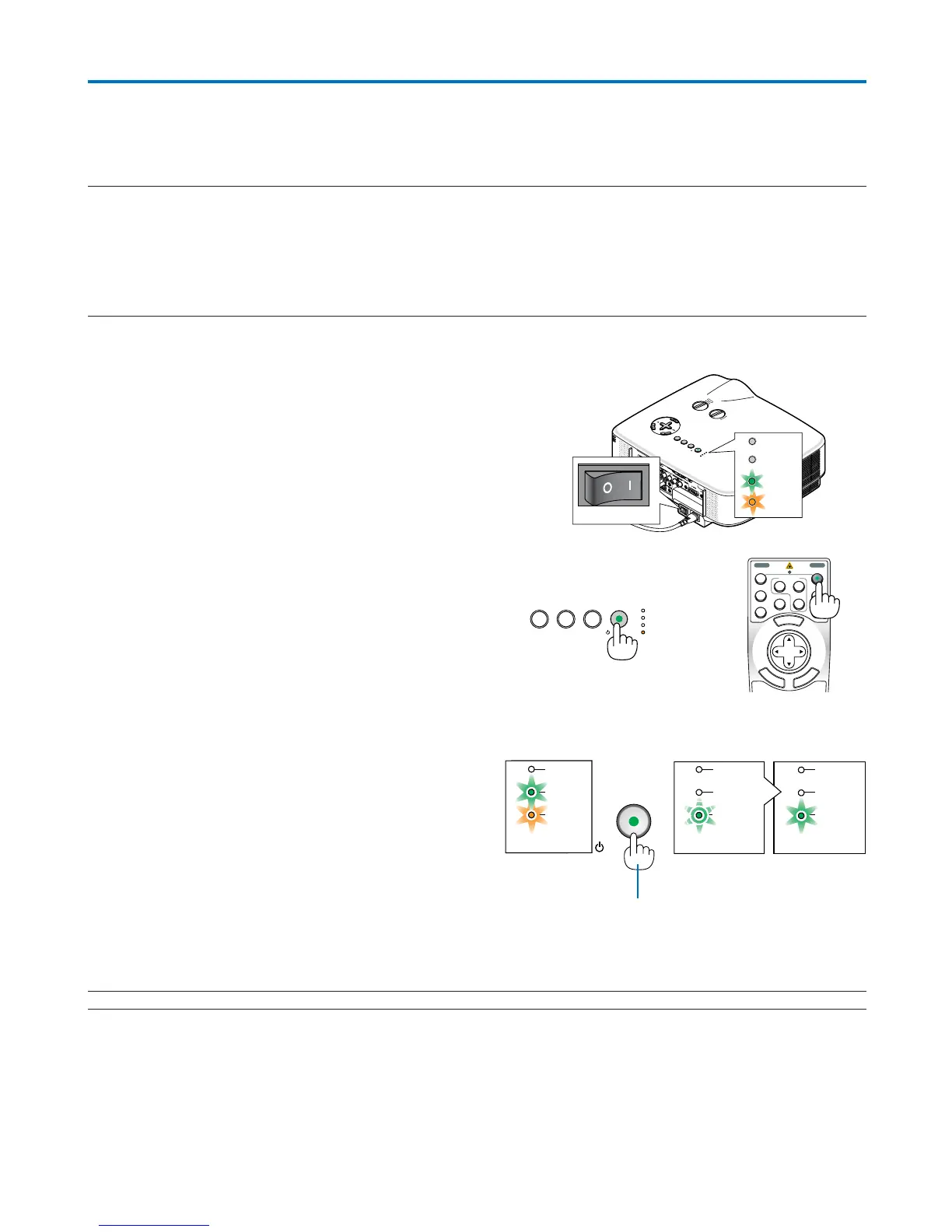 • Projektorn har två strömbrytare: huvudströmbrytaren och POWER-tangenten (ON/STAND BY) (POWER ON och OFF på